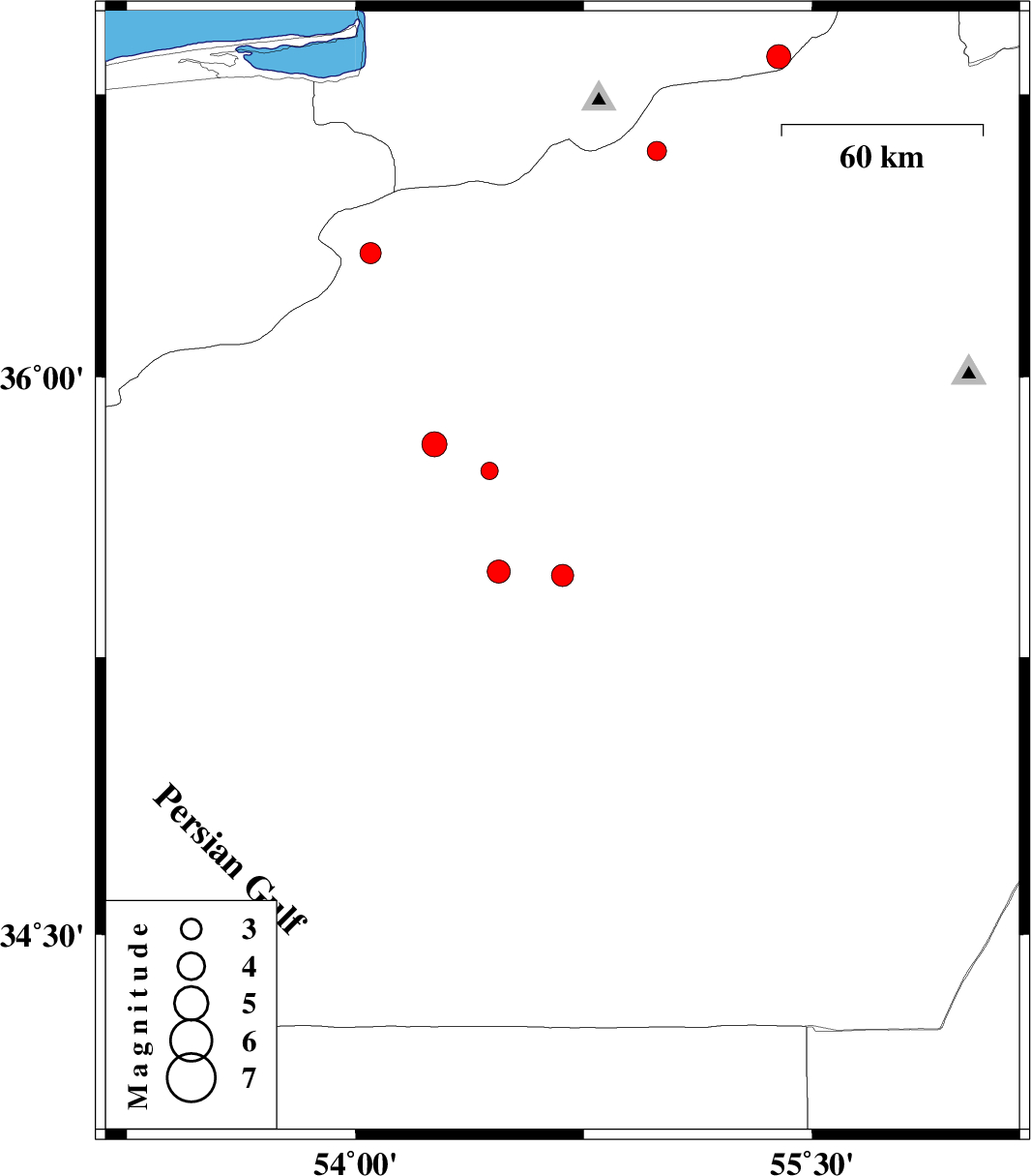 | 2012/03/06 | 06:34:25.3 | 10:04:25.3 | 35.82 | 54.26 | 16 | ML:3.6 | Semnan Province, 39 km South of Damghan | ||