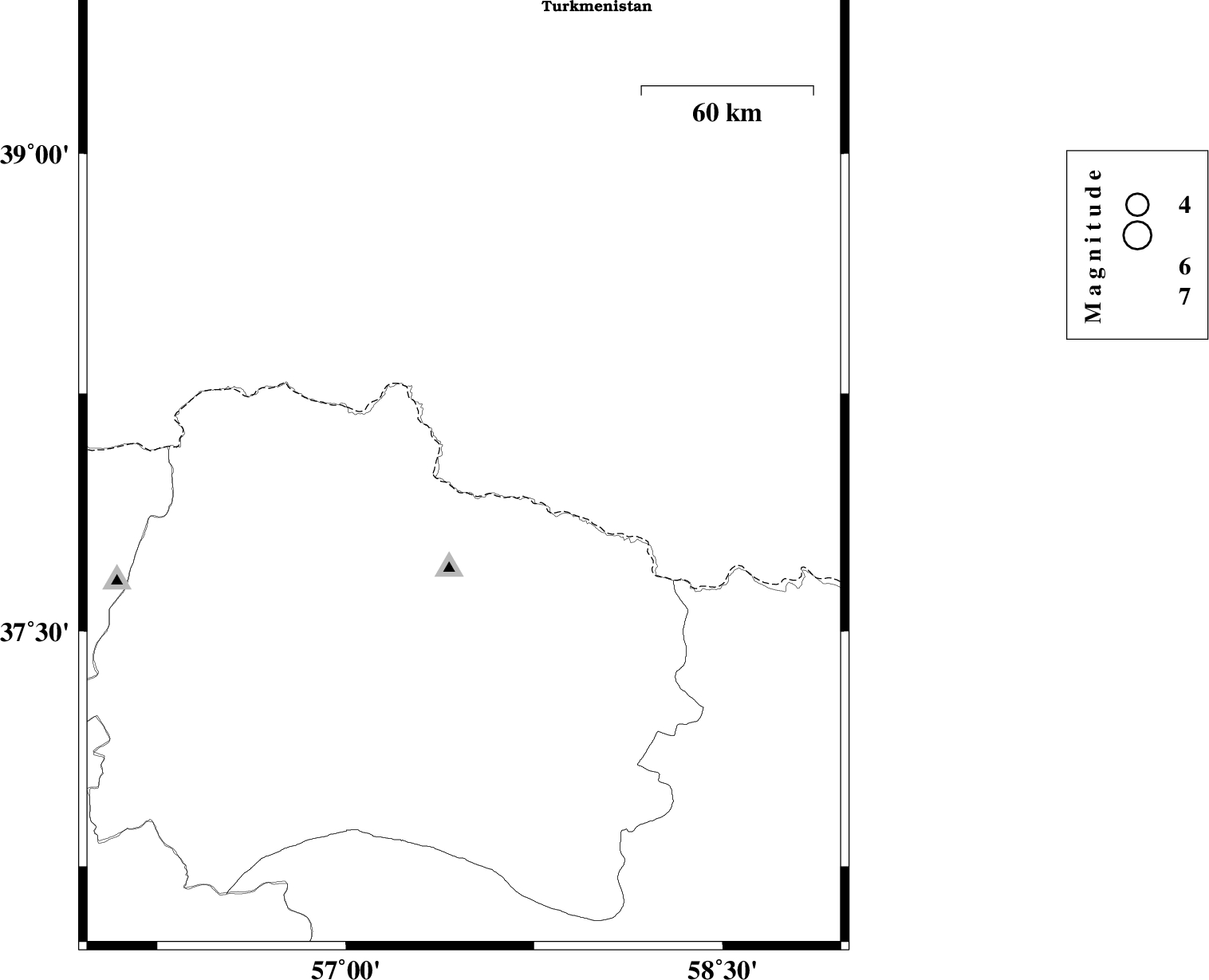 | 2012/03/10 | 15:54:28.6 | 19:24:28.6 | 37.4 | 57.1 | 15 | ML:3.2 | Khorasan(north) Province, 22 km West of Bojnurd | ||