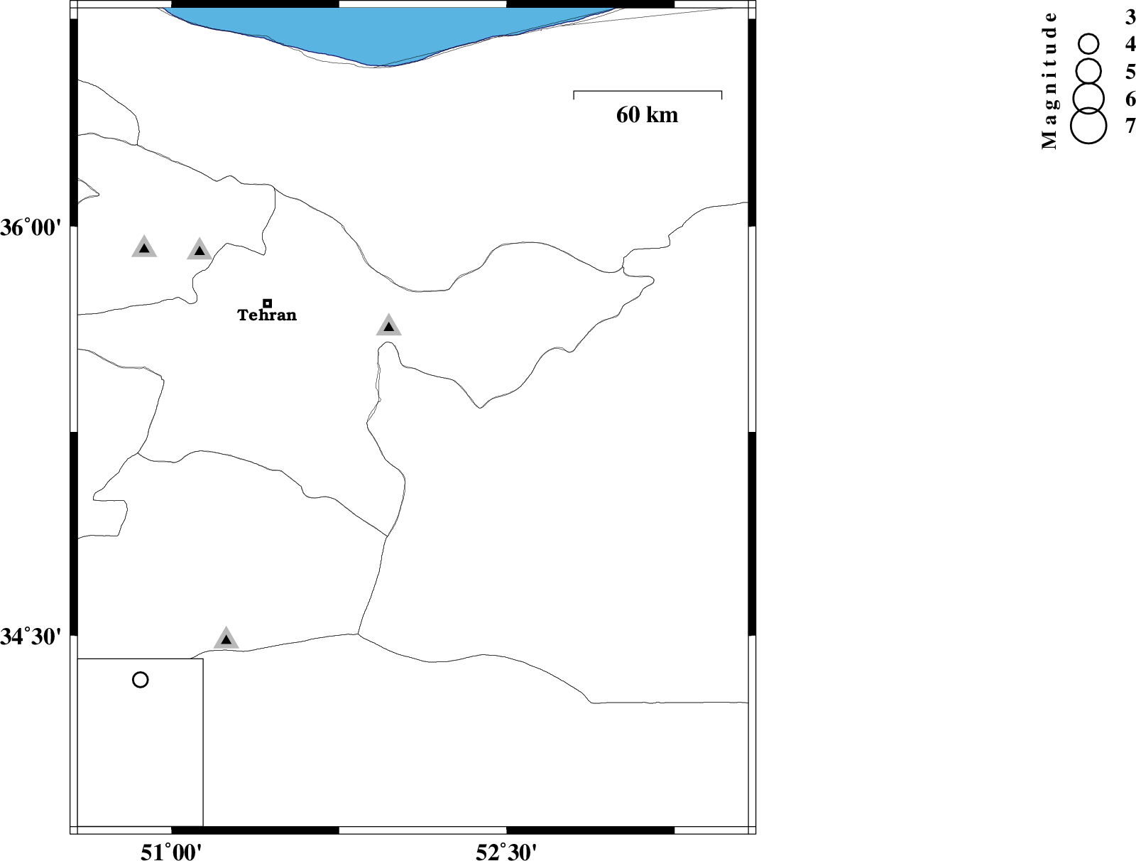 | 2012/03/28 | 05:35:19.6 | 10:05:19.6 | 35.29 | 52.08 | 18 | ML:2.5 | Semnan Province, 24 km West of Garmsar |