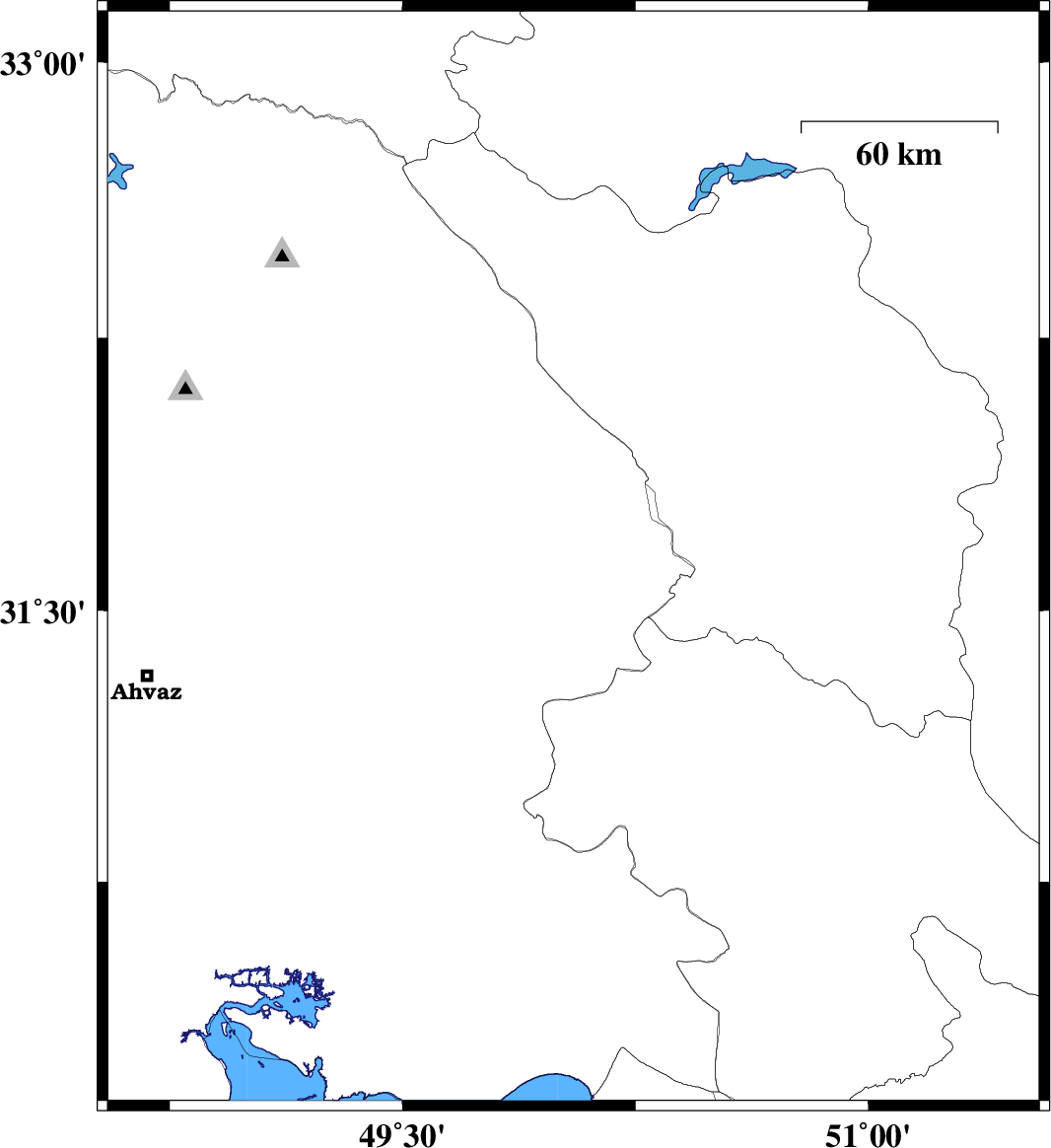 | 2012/05/07 | 12:54:21.4 | 17:24:21.4 | 31.64 | 50.05 | 15 | ML:3.8 | Khoozestan Province, 20 km North-East of Bagh Malek | ||