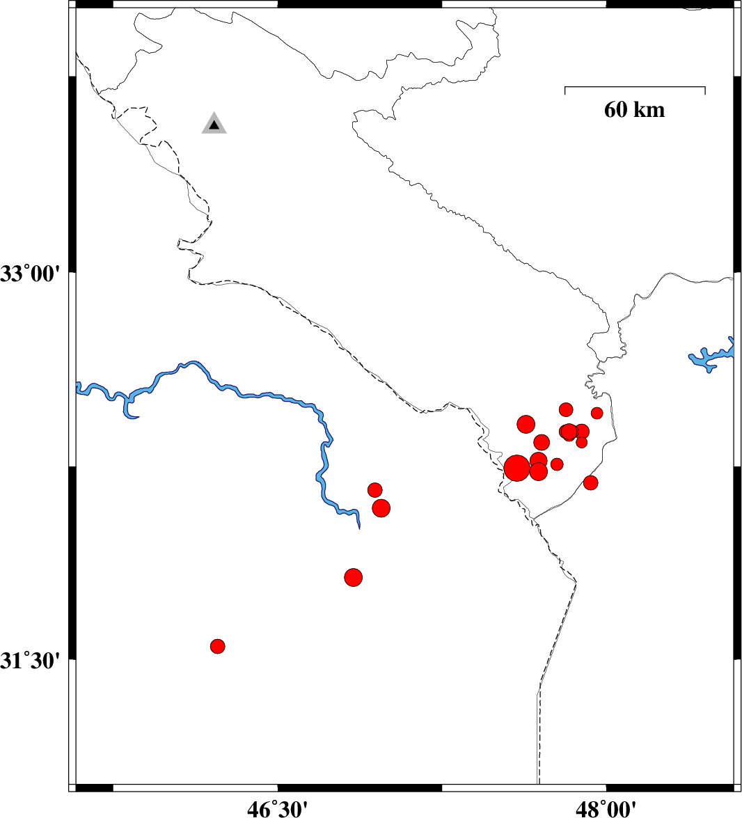 2012/05/09 19:51:16.8 00:21:16.8 32.7547.1514 ML:3 Ilam Province, 12 km West of Dehloran
