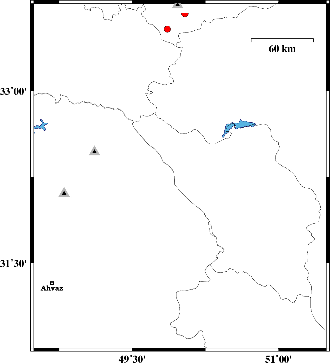 | 2012/05/05 | 12:38:36.8 | 17:08:36.8 | 32.53 | 48.71 | 14 | ML:3.3 | Khoozestan Province, 35 km East of Andimeshk | ||
