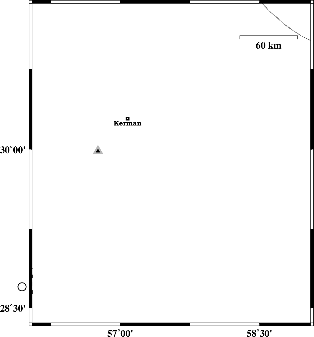 | 2012/05/19 | 01:46:35.4 | 06:16:35.4 | 29.86 | 57.55 | 37 | ML:3 | Kerman Province, 66 km South-East of Kerman |