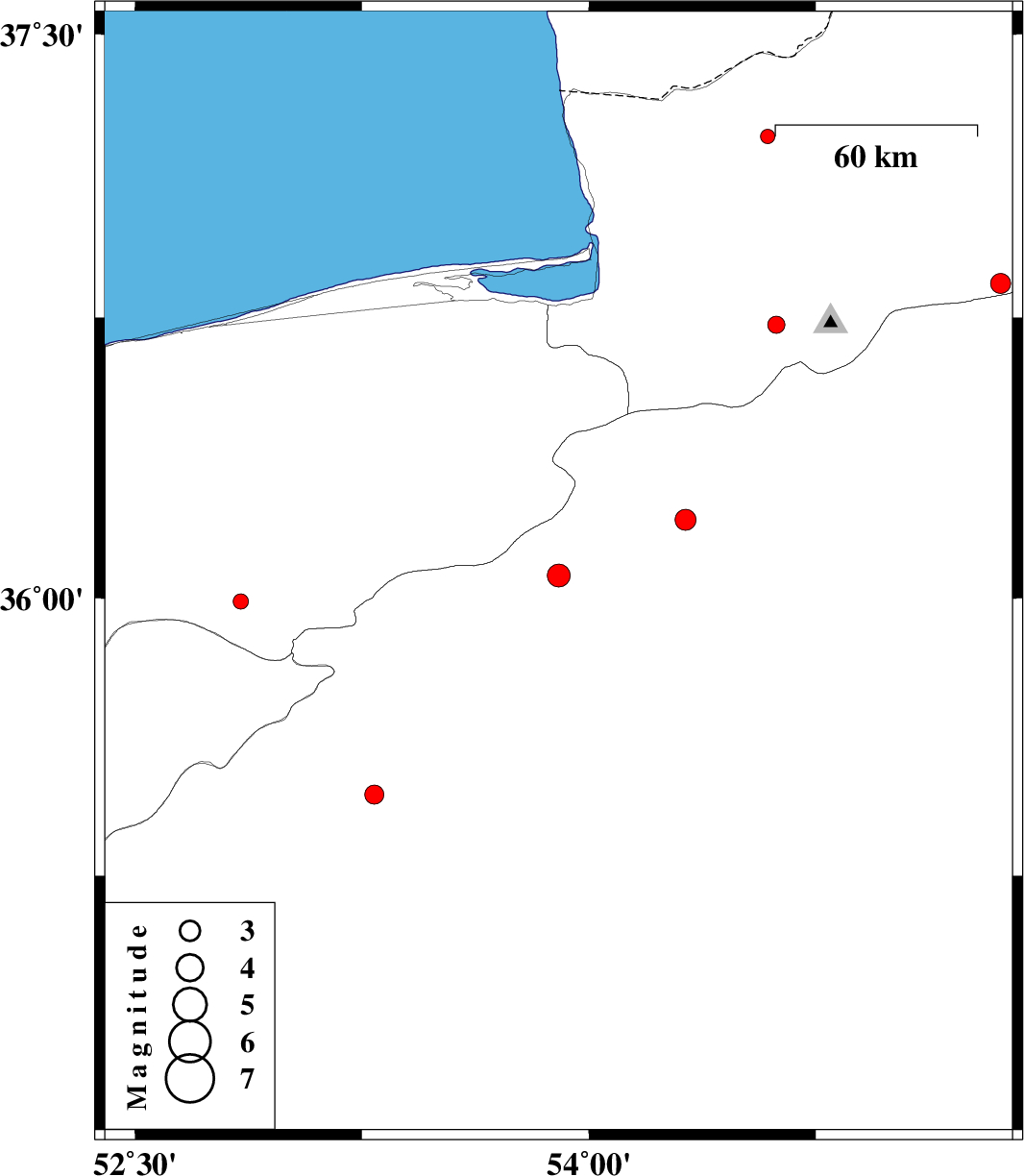 | 2012/05/24 | 18:48:00.2 | 23:18:00.2 | 36.06 | 53.9 | 15 | ML:3.4 | Semnan Province, 42 km South-West of Damghan | ||