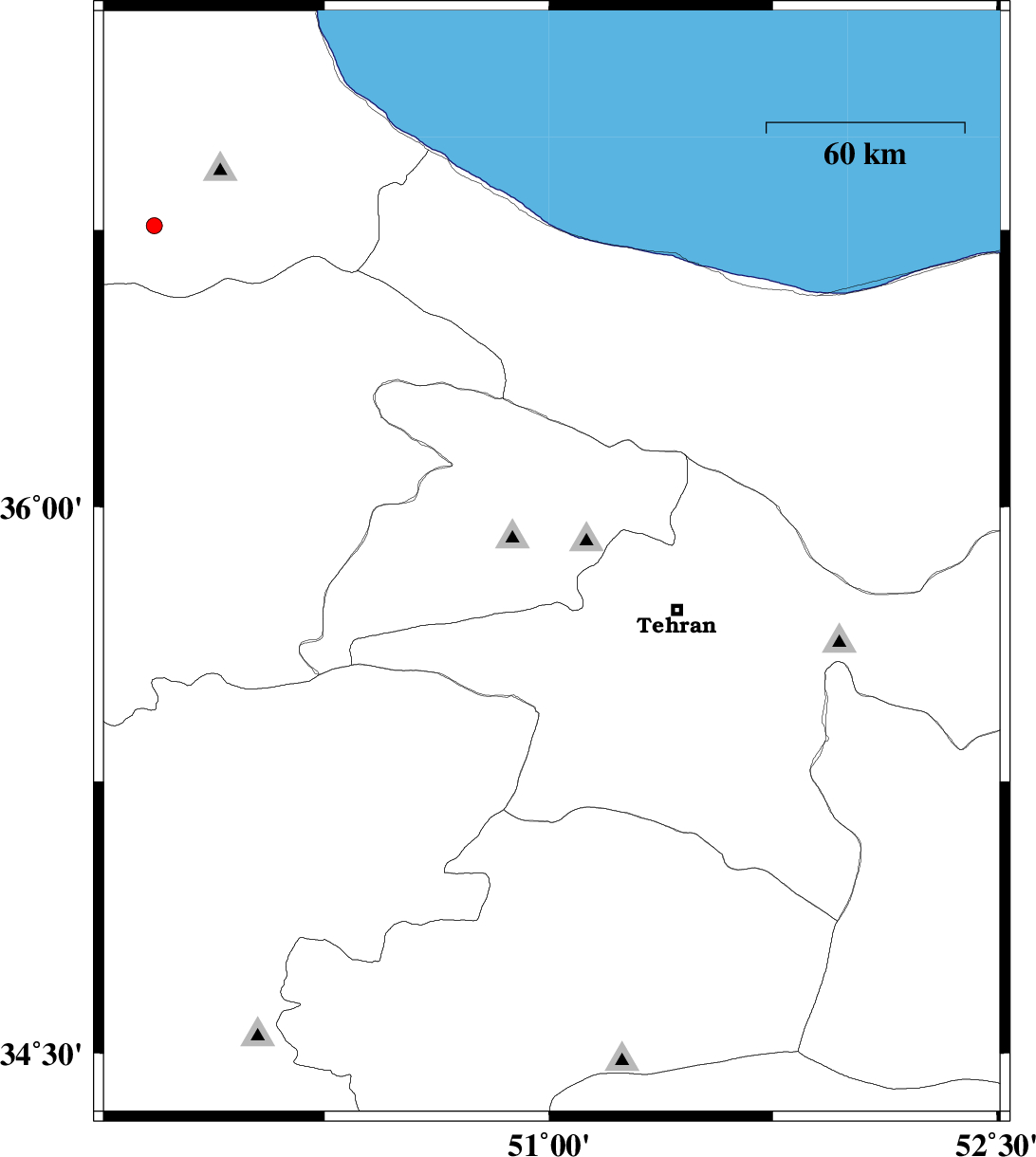 | 2012/05/27 | 22:25:16.2 | 02:55:16.2 | 35.86 | 51.98 | 14 | ML:2.4 | Mazandaran Province, 18 km North of Damavand |