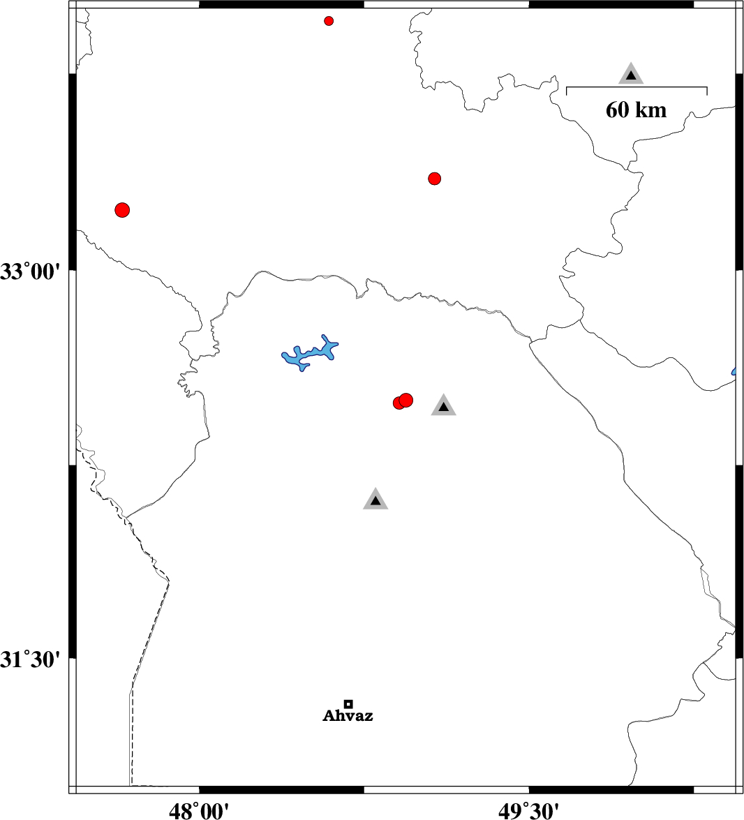 | 2012/06/02 | 02:54:44.3 | 07:24:44.3 | 32.5 | 48.94 | 15 | ML:2.8 | Khoozestan Province, 20 km North-West of Lali | ||