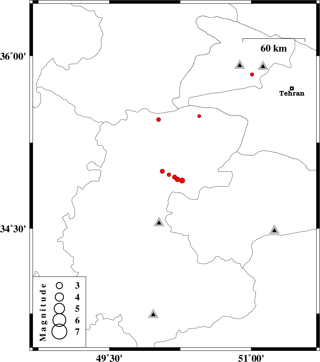 | 2012/06/05 | 04:13:40.2 | 08:43:40.2 | 35 | 50.06 | 18 | ML:2.1 | Markazi Province, 28 km West of Saveh | ||