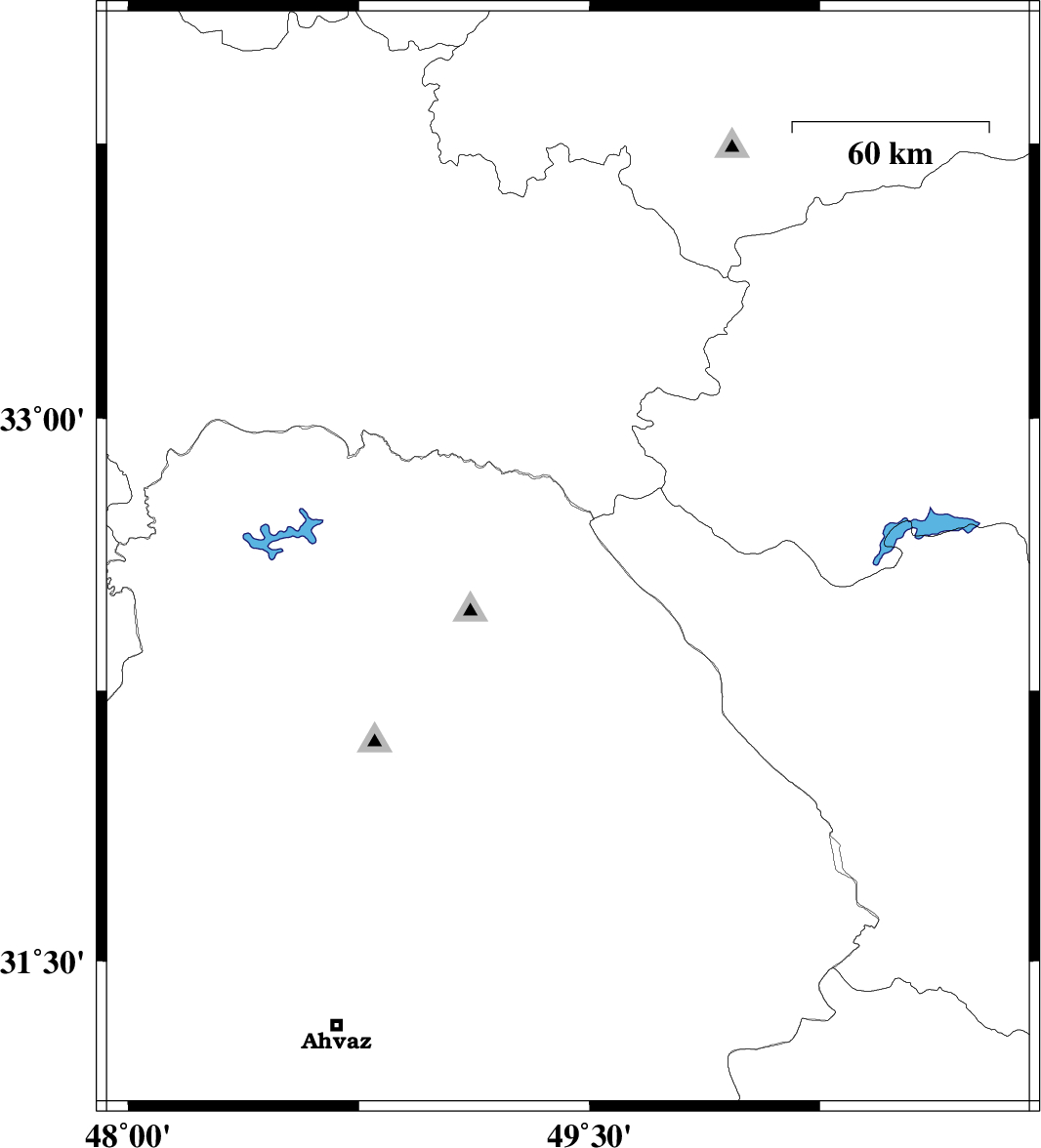 | 2012/06/06 | 01:44:25.7 | 06:14:25.7 | 32.53 | 48.68 | 14 | ML:2.6 | Khoozestan Province, 32 km East of Andimeshk |