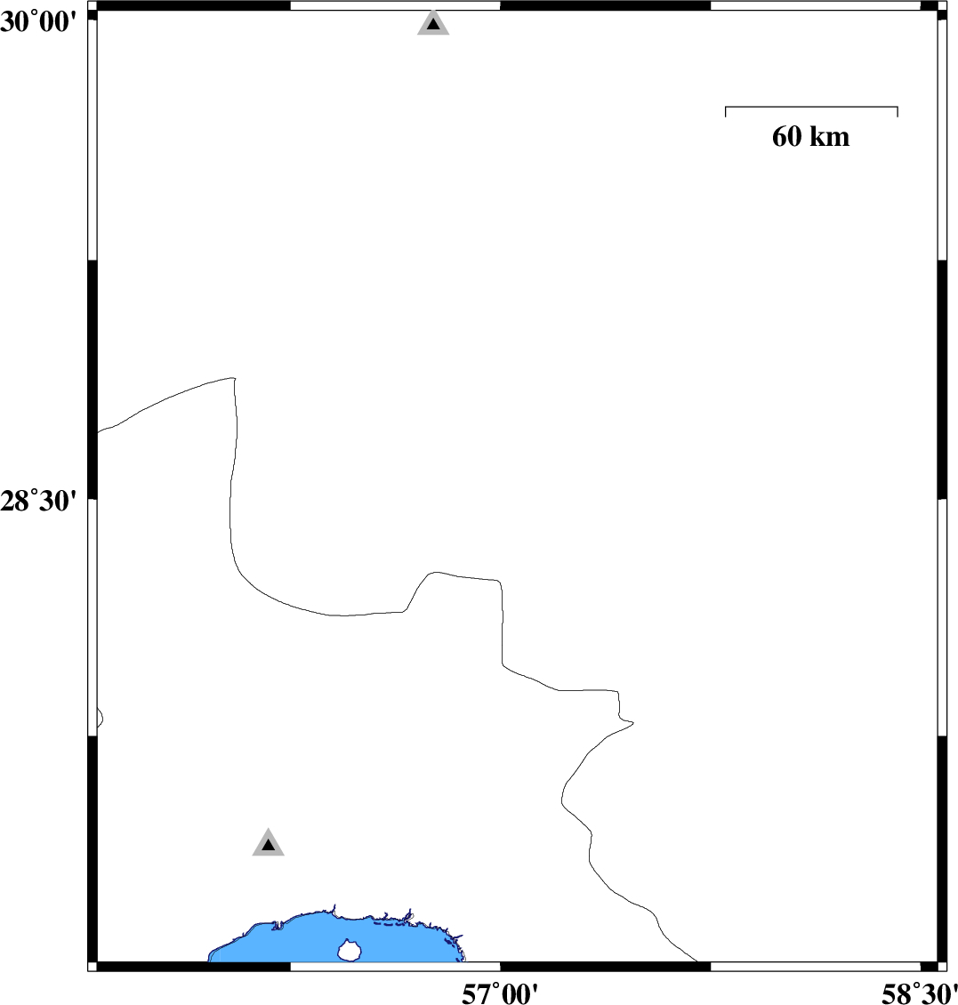 | 2012/06/19 | 05:17:14.7 | 09:47:14.7 | 28.19 | 57.44 | 14 | ML:3.9 | Kerman Province, 37 km North-West of Kahnuj | ||