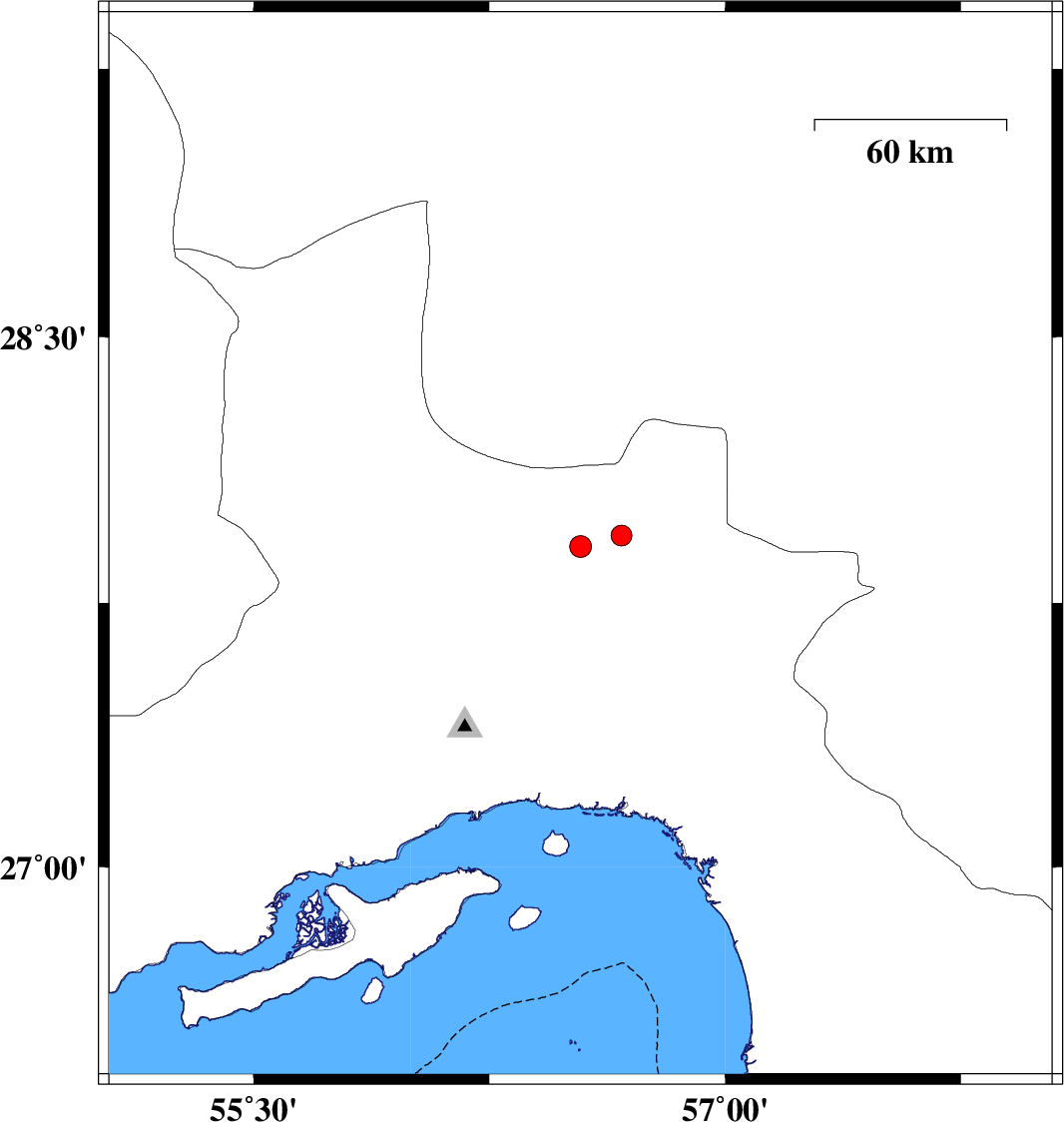 | 2012/06/29 | 12:28:13.6 | 16:58:13.6 | 27.91 | 56.54 | 14 | ML:3.1 | Hormozgan Province, 85 km North-East of Bandar-e abbas | ||