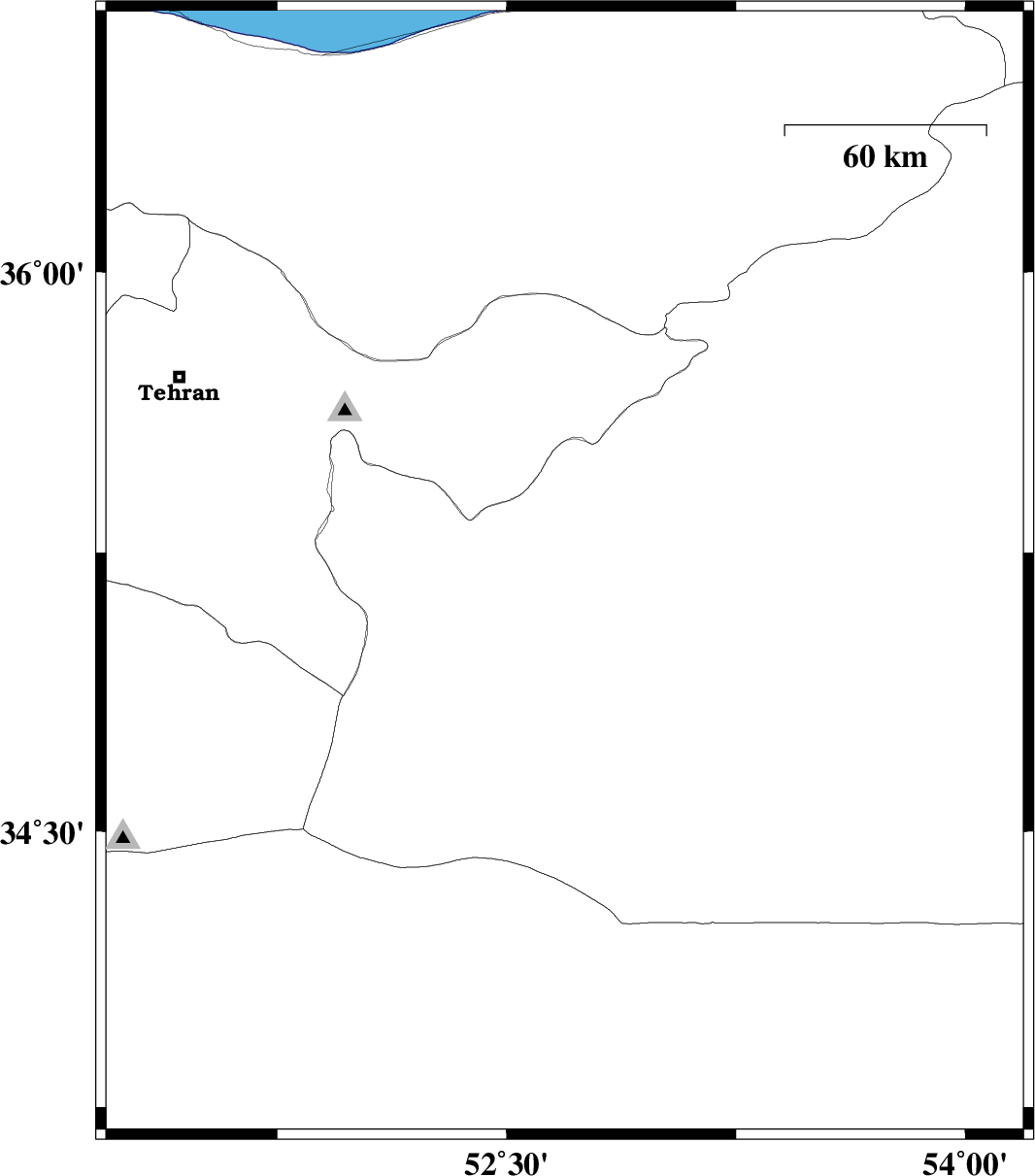 | 2012/07/19 | 08:17:01.3 | 12:47:01.3 | 35.19 | 52.69 | 25 | ML:2.8 | Semnan Province, 32 km East of Garmsar | ||