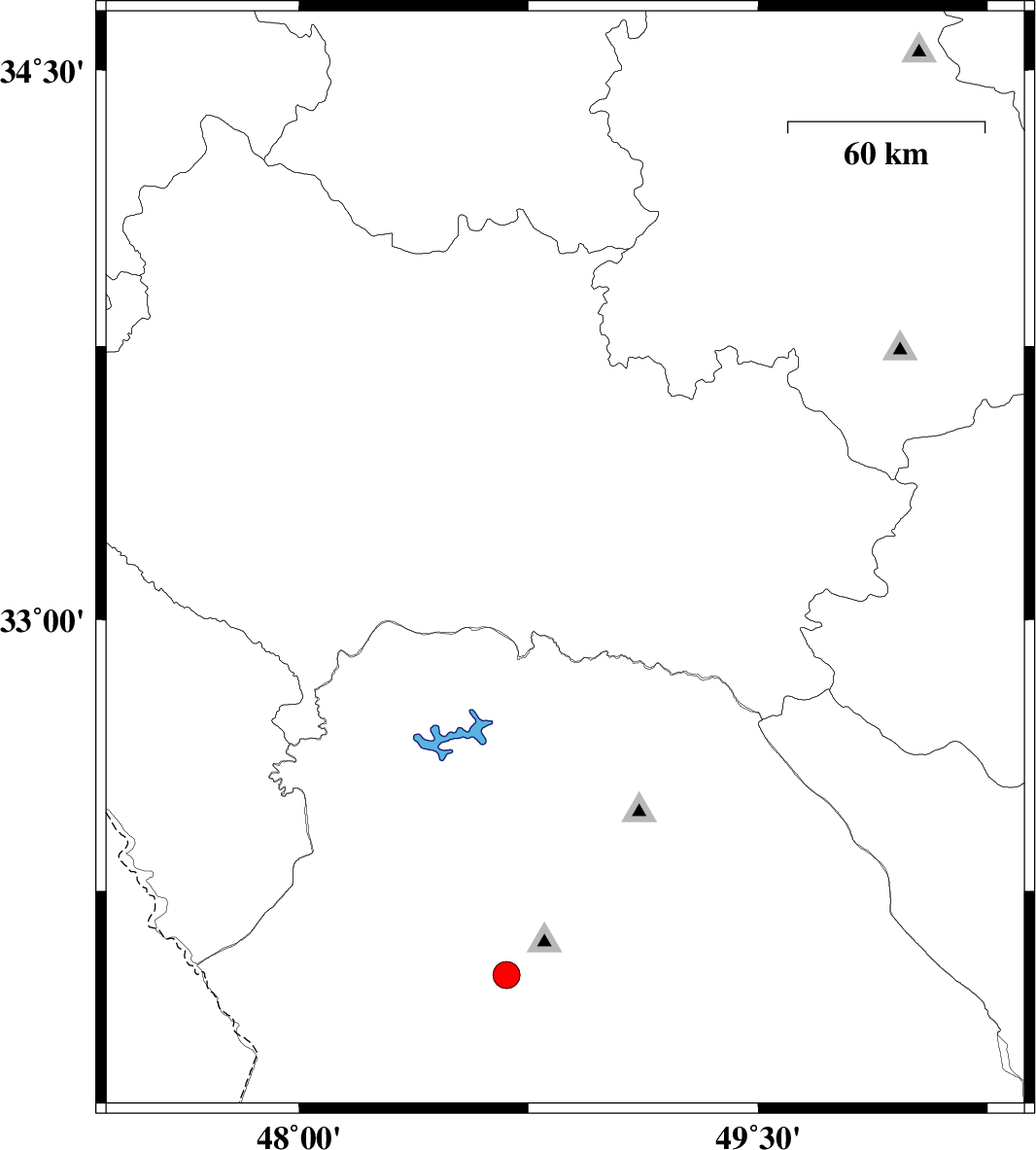 | 2012/07/22 | 12:32:02.3 | 17:02:02.3 | 32.66 | 49.91 | 18 | ML:2.6 | Chaharmahal Bakhtiari Province, 29 km North-West of Chelgard | ||