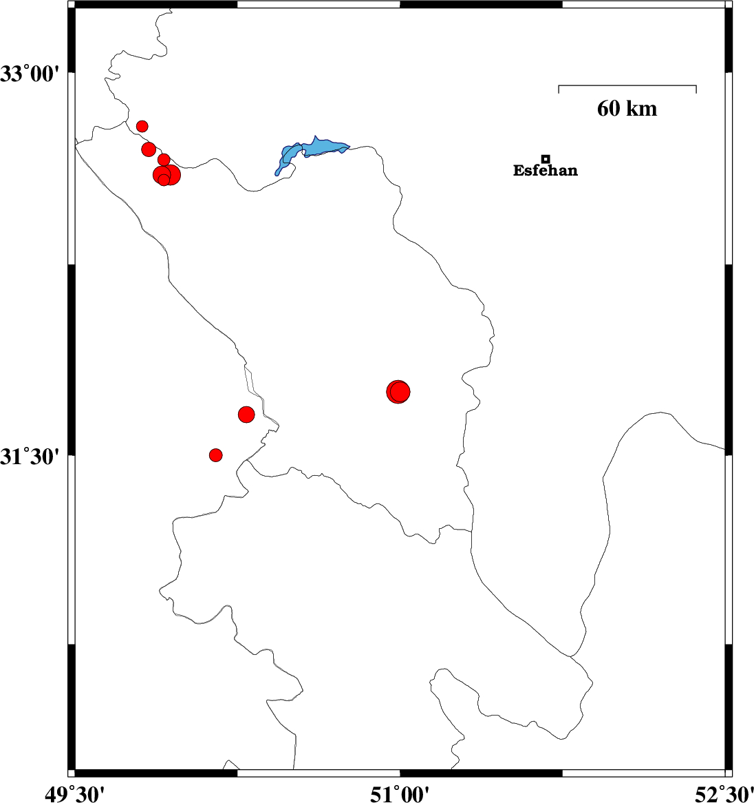 2012/07/22 15:59:30.8 20:29:30.8 32.649.914 ML:3.6 Chaharmahal Bakhtiari Province, 25 km North-West of Chelgard