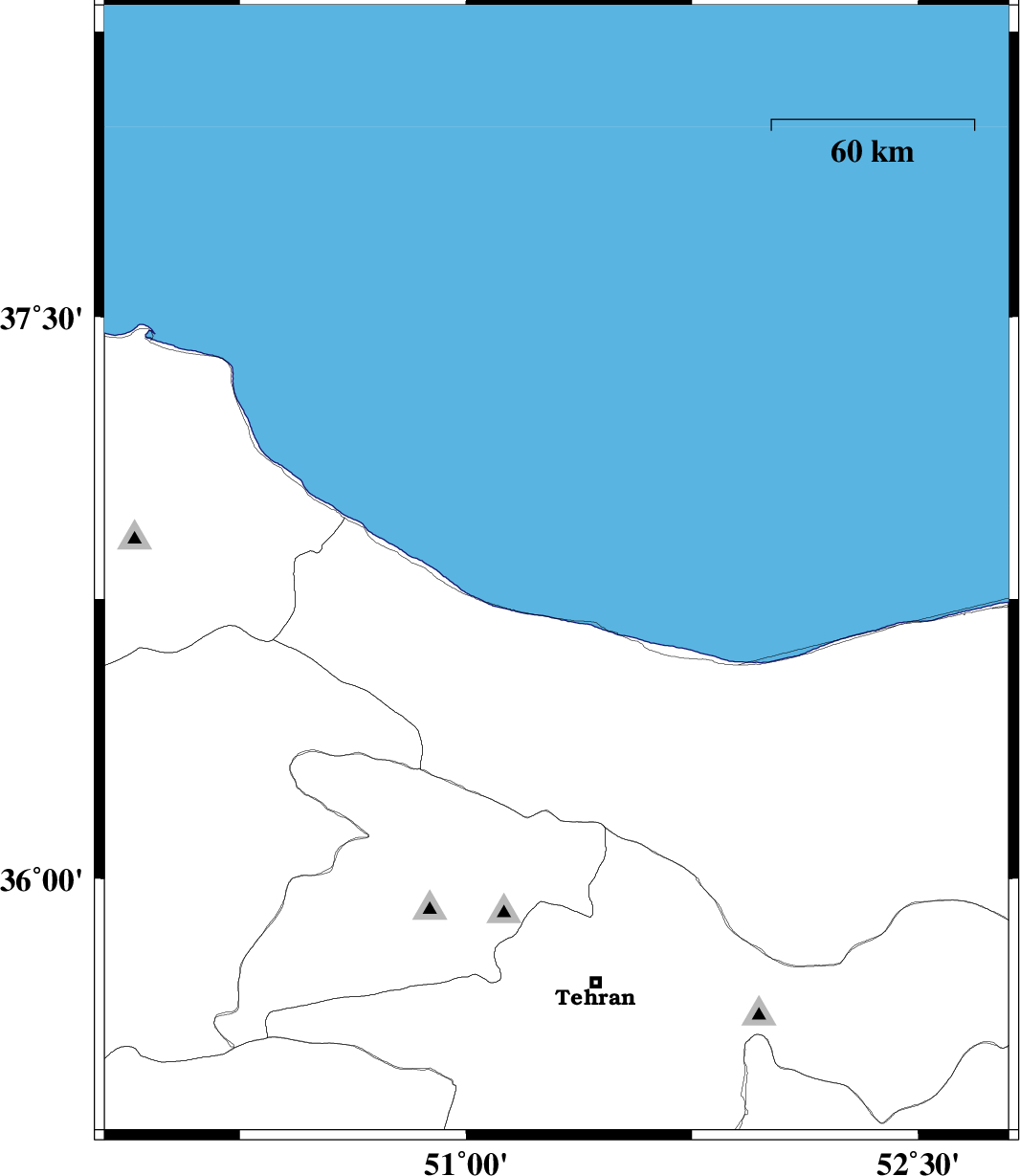 | 2012/07/27 | 21:19:26.9 | 01:49:26.9 | 36.82 | 51.3 | 6 | ML:4.1 | Caspian Sea, 22 km North-West of Chalus | ||