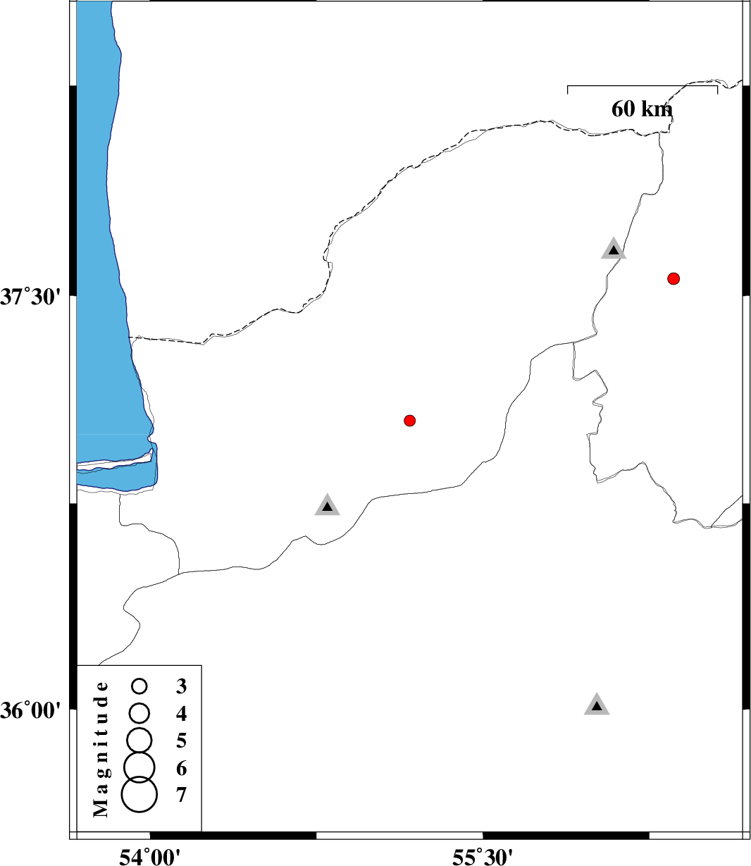 | 2012/07/29 | 17:01:58.3 | 21:31:58.3 | 37.05 | 55.17 | 14 | ML:2.3 | Golestan Province, 5 km Azadshahr | ||