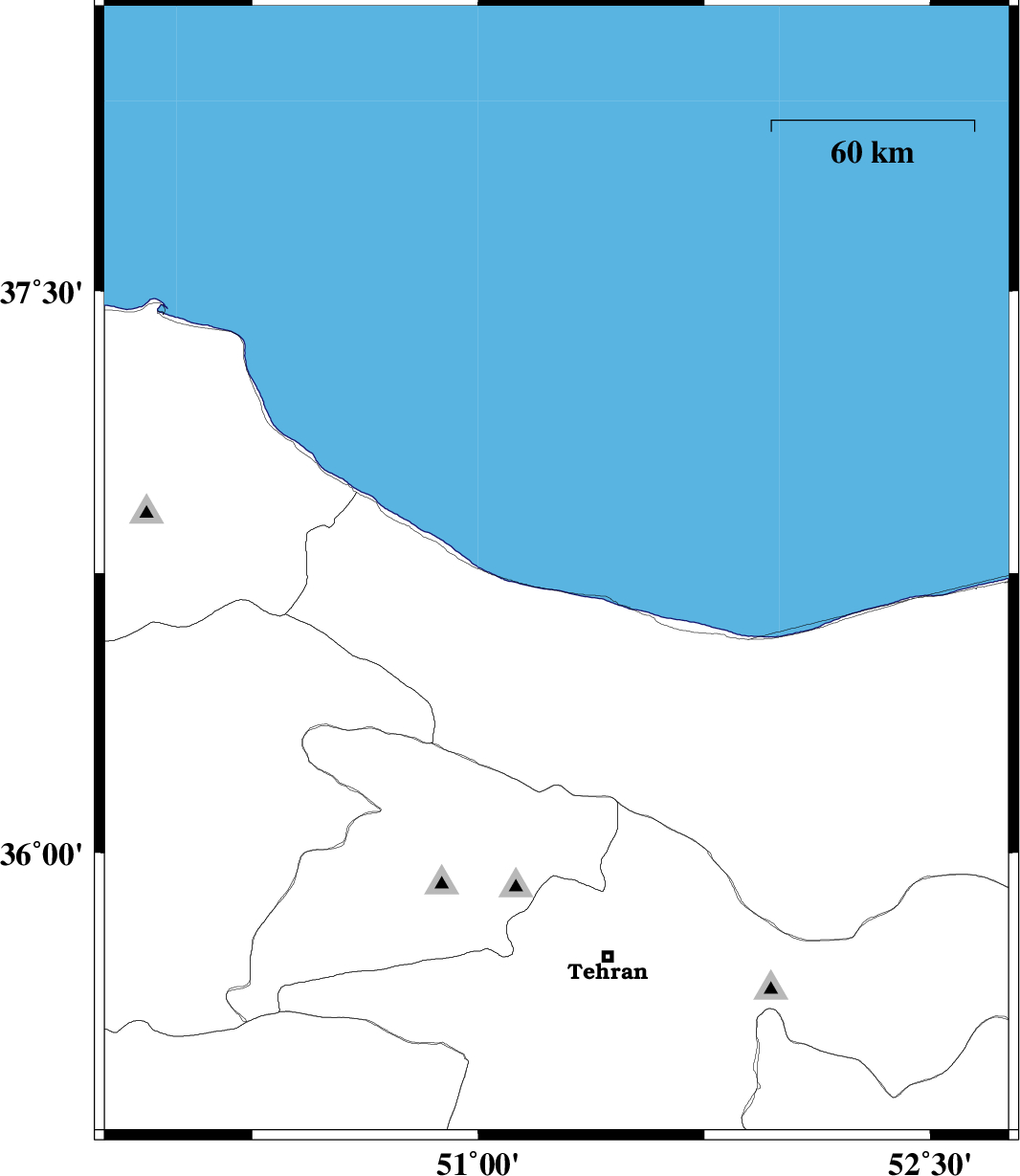 | 2012/08/03 | 03:16:54.4 | 07:46:54.4 | 36.75 | 51.26 | 14 | ML:2.2 | Caspian Sea, 18 km West of Chalus | ||