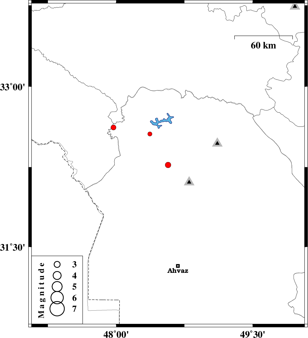 | 2012/08/06 | 00:19:07.3 | 04:49:07.3 | 32.27 | 48.57 | 14 | ML:2.8 | Khoozestan Province, 20 km South-East of Dezful | ||