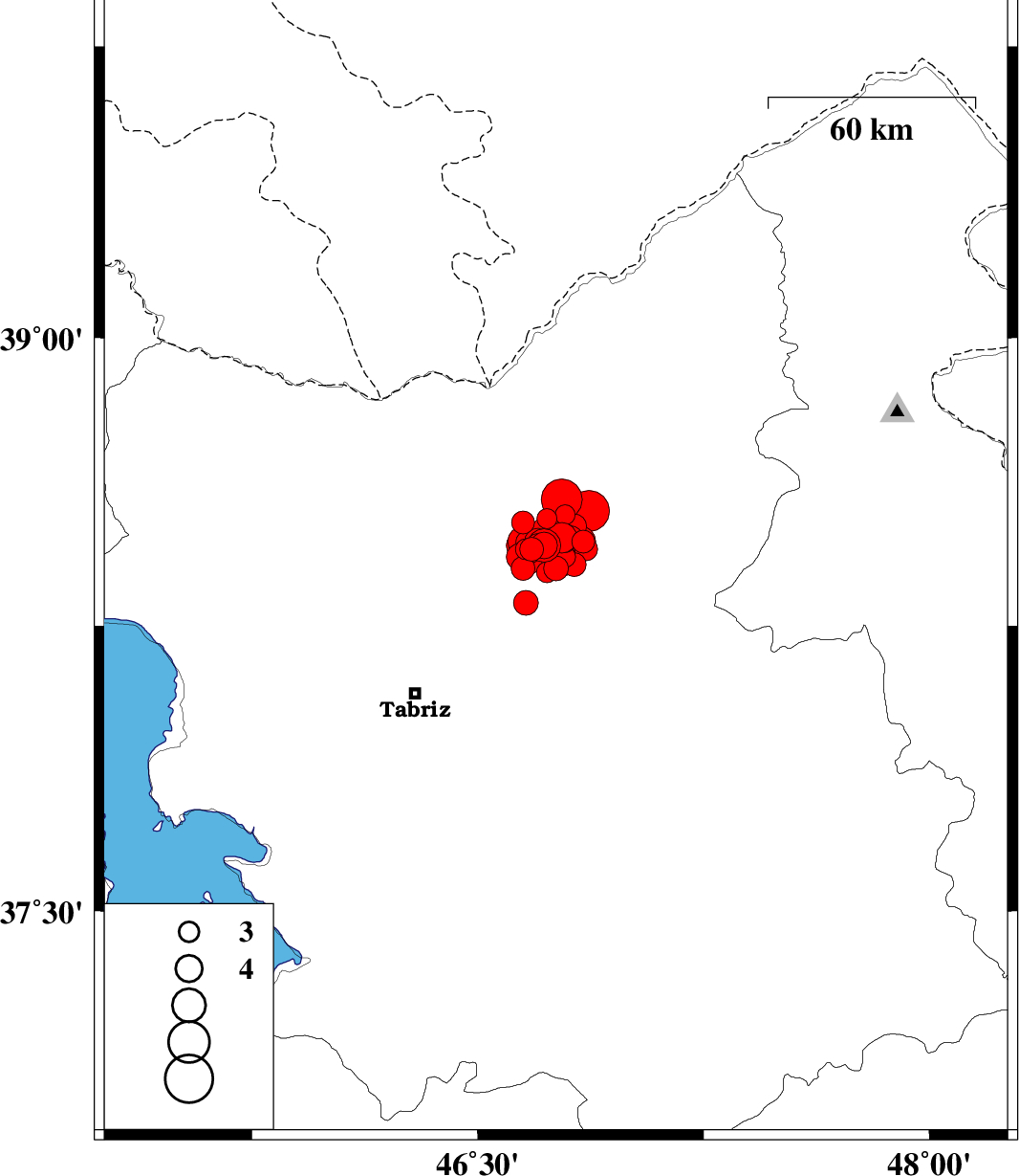 2012/08/11 16:34:33.1 21:04:33.1 38.4646.6718 ML:3.2 Azarbaijan Sharghi Province, 35 km West of Ahar