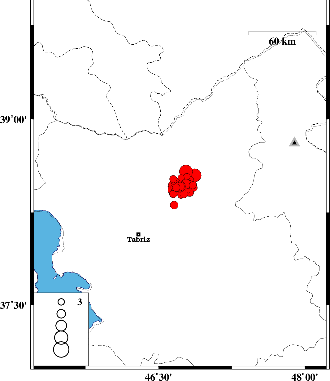 2012/08/11 17:00:27.7 21:30:27.7 38.4346.7918 ML:3.1 Azarbaijan Sharghi Province, 25 km West of Ahar