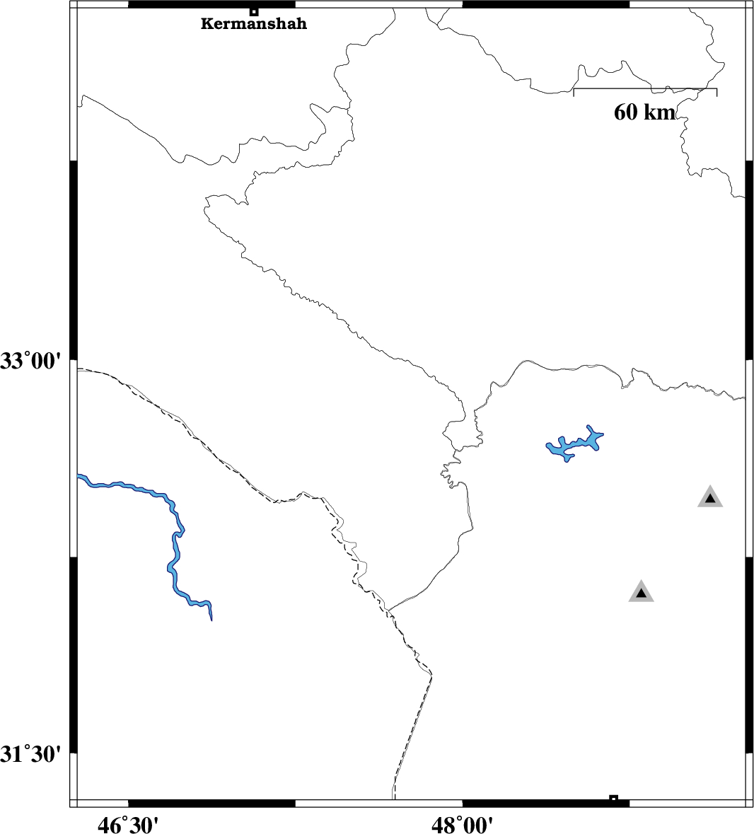 | 2012/08/25 | 09:23:14.6 | 13:53:14.6 | 32.7 | 47.58 | 18 | ML:2.5 | Ilam Province, 30 km East of Dehloran | ||