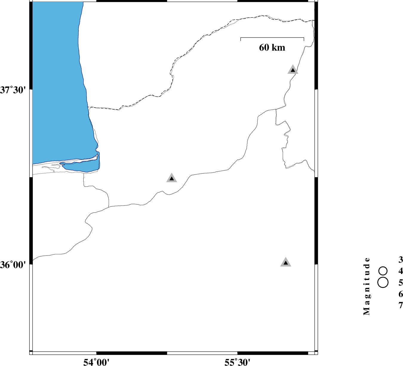 | 2012/08/29 | 23:46:21.5 | 04:16:21.5 | 36.74 | 54.82 | 15 | ML:2.5 | Golestan Province, 18 km South of Ali Abad | ||