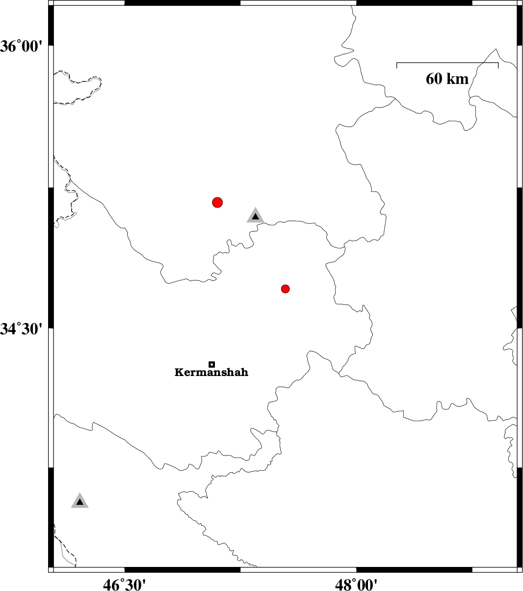 | 2012/09/10 | 15:50:18.2 | 20:20:18.2 | 34.71 | 47.54 | 15 | ML:2.4 | Kermanshah Province, 10 km Sonqor | ||