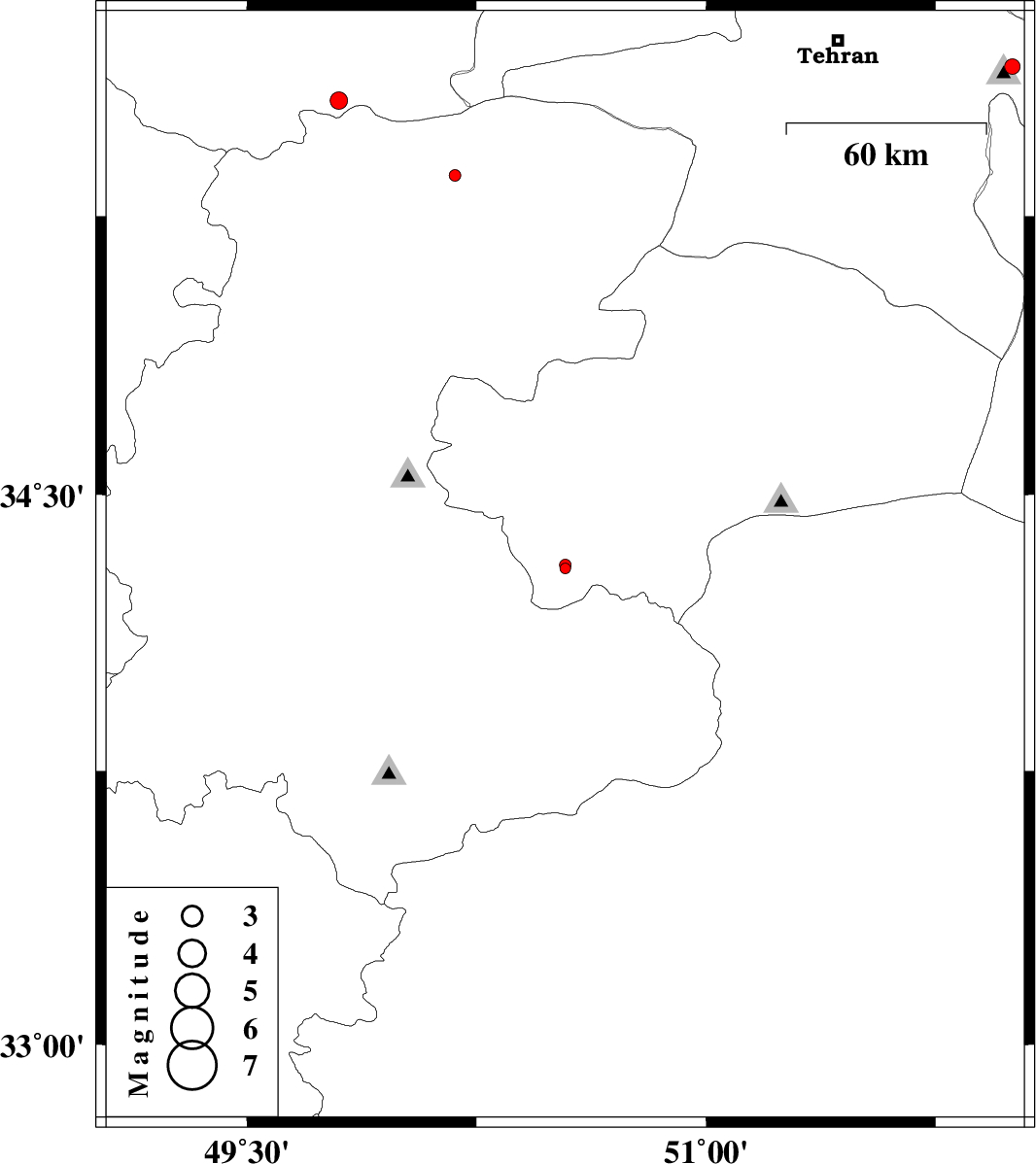 | 2012/09/10 | 04:49:36.9 | 09:19:36.9 | 34.31 | 50.54 | 14 | ML:1.7 | Qom Province, 37 km North-West of Delijan |