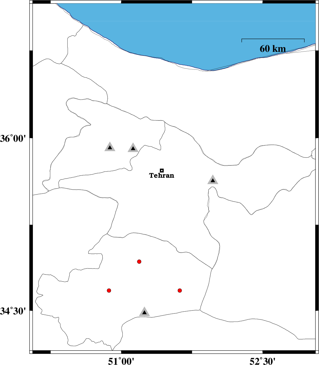 | 2012/09/23 | 08:12:50.1 | 11:42:50.1 | 35.9 | 51.88 | 14 | ML:1.9 | Mazandaran Province, 27 km North-West of Damavand |