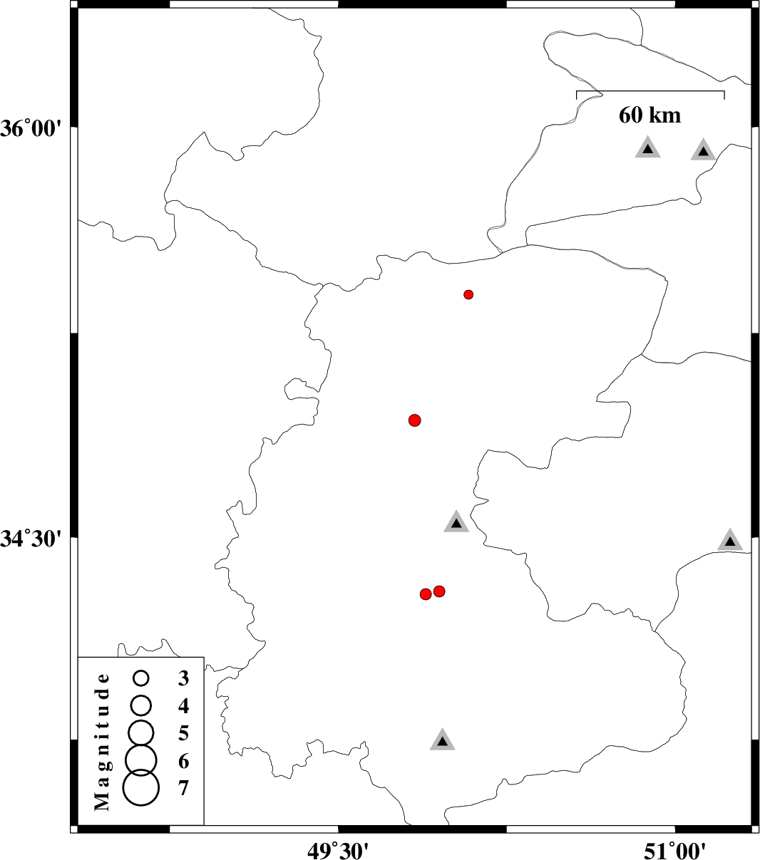 | 2012/09/29 | 07:12:33.7 | 10:42:33.7 | 34.93 | 49.84 | 14 | ML:2.4 | Markazi Province, 32 km North-West of Tafresh | ||