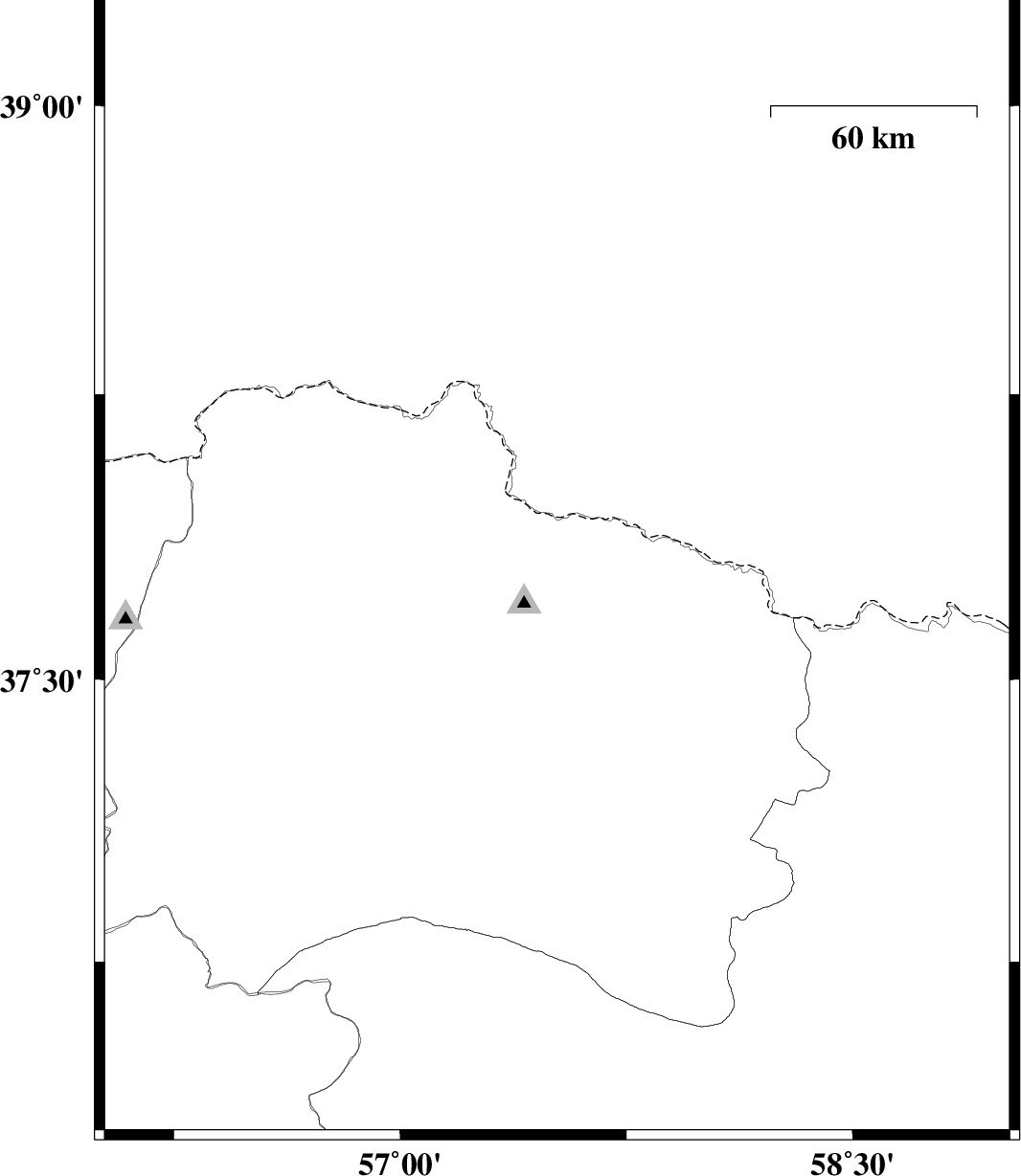 | 2012/10/01 | 00:39:17.6 | 04:09:17.6 | 37.8 | 57.52 | 14 | ML:1.9 | Khorasan(north) Province, 40 km North-East of Bojnurd | ||