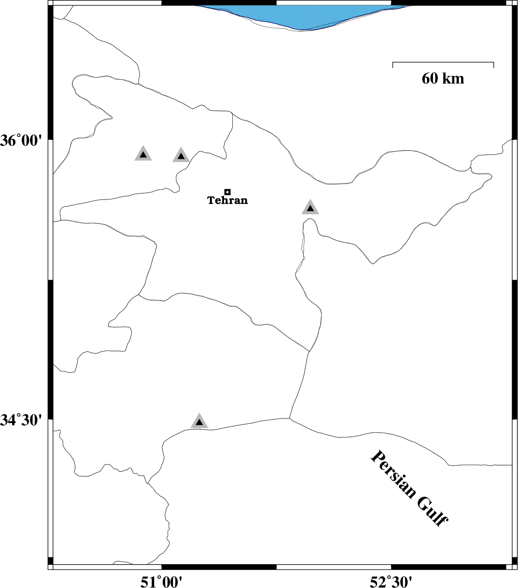 | 2012/10/15 | 03:54:45.8 | 07:24:45.8 | 35.21 | 51.79 | 26 | ML:1.8 | Tehran Province, 17 km South-East of Varamin | ||