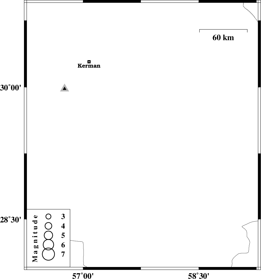 | 2012/10/16 | 04:23:41.3 | 07:53:41.3 | 29.45 | 57.77 | 15 | ML:4.2 | Kerman Province, 87 km North of Jiroft |