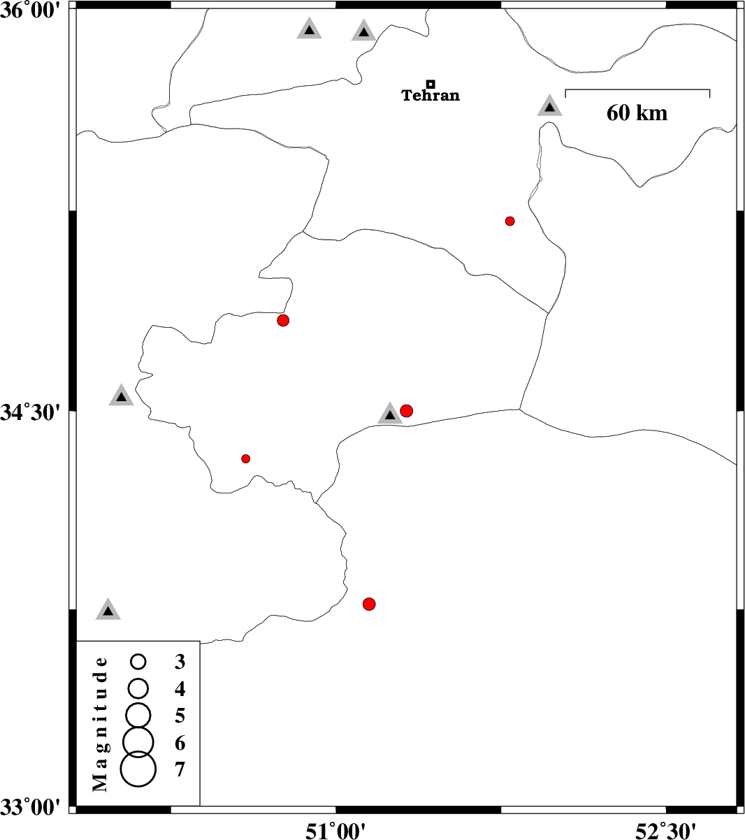 | 2012/10/15 | 03:54:45.8 | 07:24:45.8 | 35.21 | 51.79 | 26 | ML:1.8 | Tehran Province, 17 km South-East of Varamin | ||