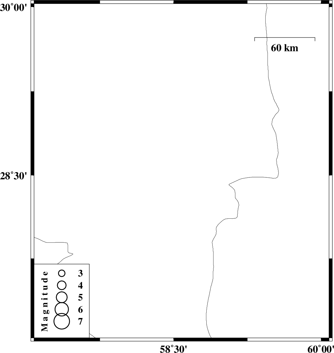 | 2012/10/29 | 10:51:00.2 | 14:21:00.2 | 28.53 | 58.58 | 14 | ML:4.3 | Kerman Province, 68 km South-East of Bam |