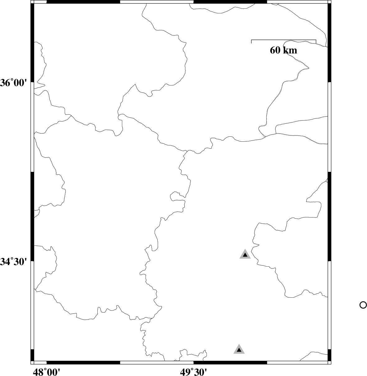 | 2012/10/31 | 09:21:58.2 | 12:51:58.2 | 35.15 | 49.37 | 15 | ML:2 | Hamedan Province, 40 km South-East of Razan |