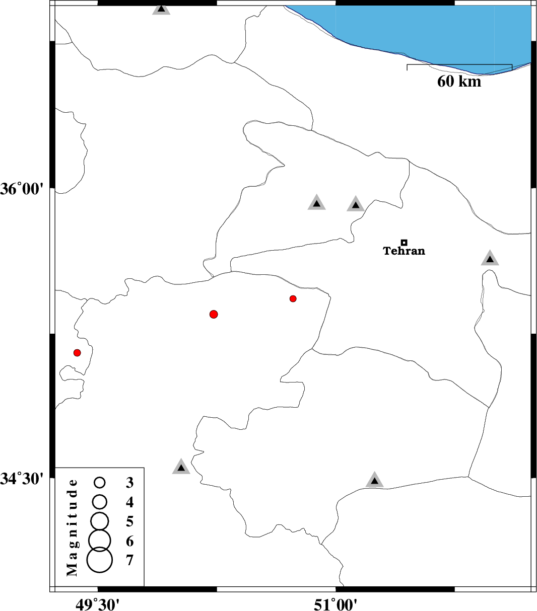 | 2012/10/31 | 09:21:58.2 | 12:51:58.2 | 35.15 | 49.37 | 15 | ML:2 | Hamedan Province, 40 km South-East of Razan |