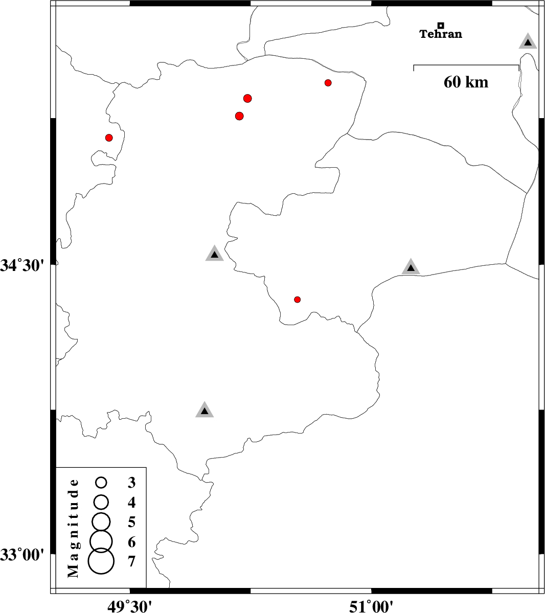 | 2012/11/03 | 08:11:14.9 | 11:41:14.9 | 34.32 | 50.54 | 33 | ML:1.7 | Qom Province, 39 km North-West of Delijan | ||