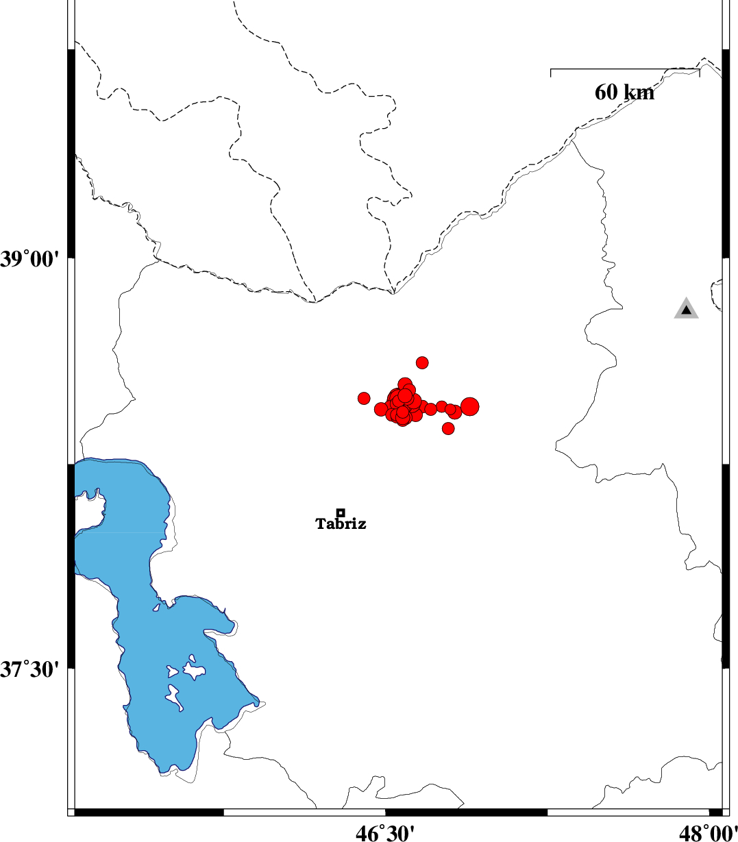 2012/11/07 07:52:11.6 11:22:11.6 38.5346.618 ML:2.6 Azarbaijan Sharghi Province, 43 km West of Ahar