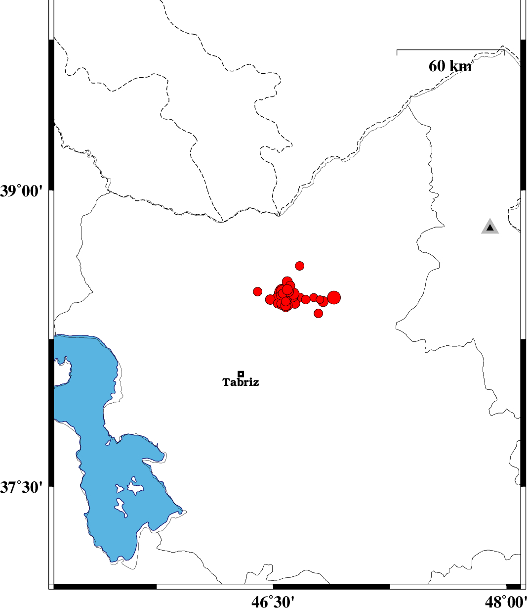 2012/11/07 07:52:11.6 11:22:11.6 38.5346.618 ML:2.6 Azarbaijan Sharghi Province, 43 km West of Ahar
