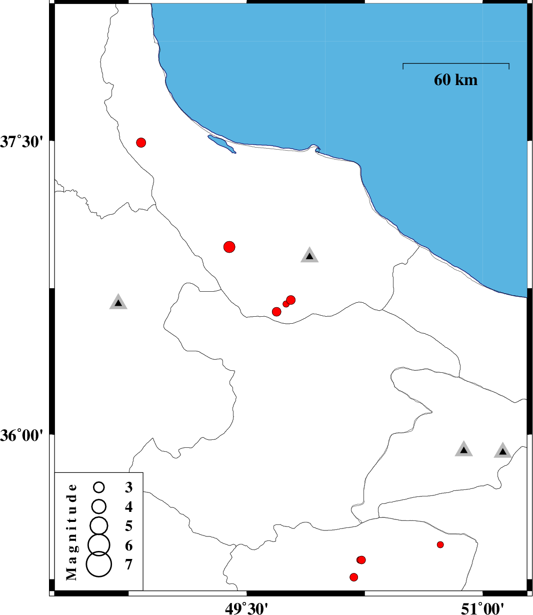 | 2012/10/27 | 10:59:46.9 | 14:29:46.9 | 36.96 | 49.39 | 15 | ML:3.2 | Gilan Province, 16 km North of Rudbar | ||