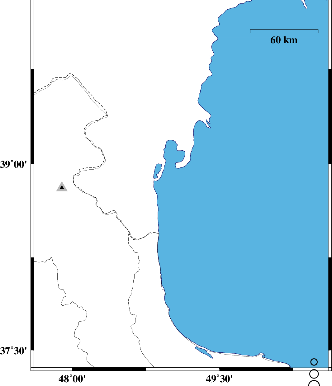 | 2012/11/26 | 21:13:43.0 | 00:43:43.0 | 38.86 | 49.11 | 27 | ML:3.8 | Caspian Sea, 54 km North-East of Astara | ||