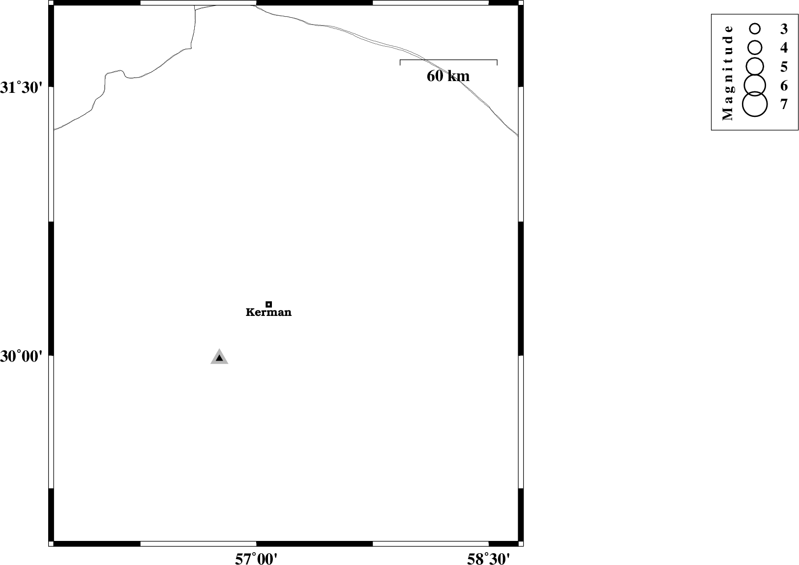 | 2012/12/03 | 13:44:27.8 | 17:14:27.8 | 30.45 | 57.19 | 14 | ML:3.3 | Kerman Province, 21 km North-East of Kerman | ||
