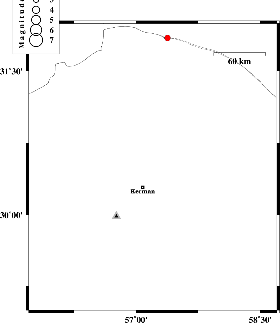| 2012/12/03 | 20:12:30.0 | 23:42:30.0 | 30.45 | 57.26 | 14 | ML:3.1 | Kerman Province, 25 km North-East of Kerman | ||