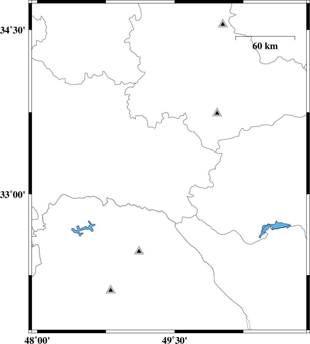 | 2012/12/05 | 00:42:14.8 | 04:12:14.8 | 33.24 | 49.44 | 29 | ML:2.3 | Lorestan Province, 24 km South of Azna | ||