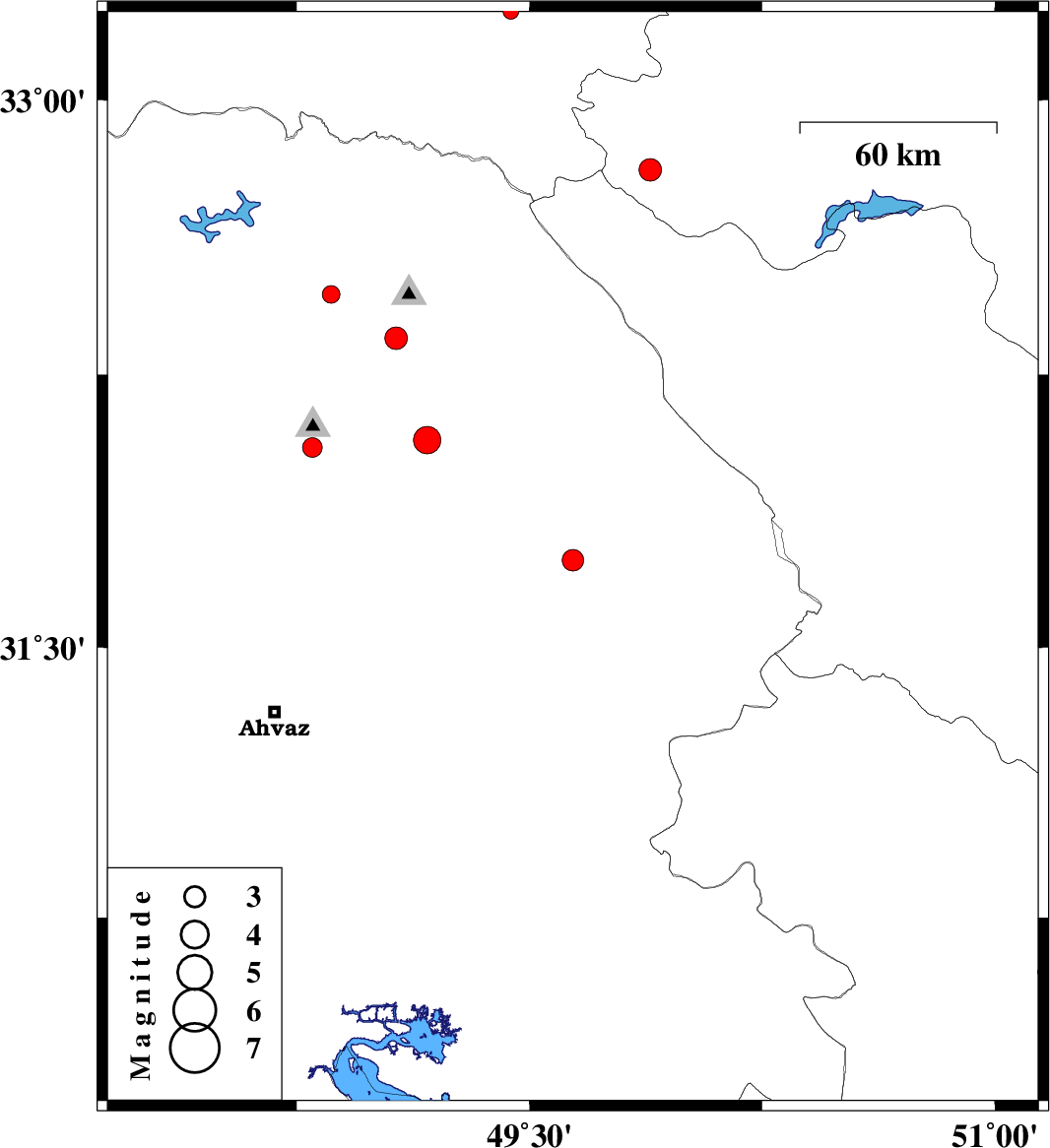 | 2012/12/02 | 22:22:46.5 | 01:52:46.5 | 32.05 | 48.8 | 14 | ML:2.8 | Khoozestan Province, 5 km Shushtar |