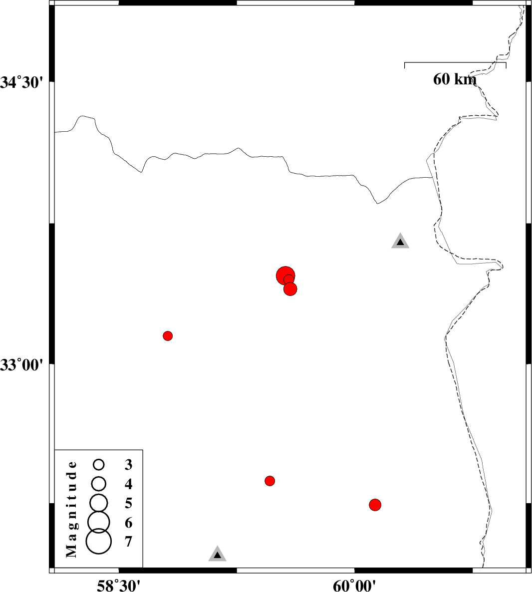 | 2012/11/17 | 14:33:38.3 | 18:03:38.3 | 32.37 | 59.46 | 14 | ML:2.8 | Khorasan(south) Province, 42 km South-West of Sarbisheh | ||