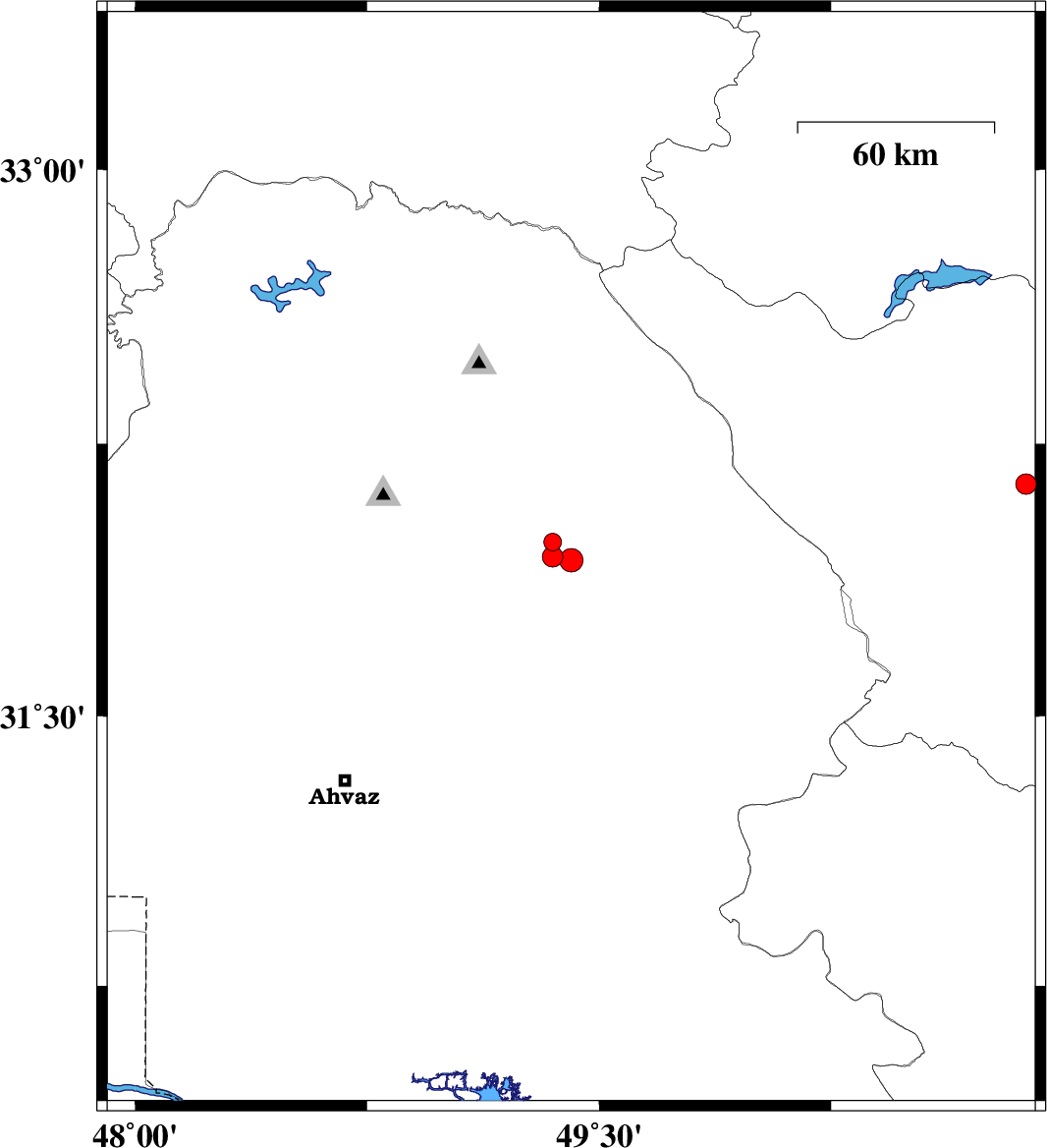 | 2012/12/15 | 11:34:32.9 | 15:04:32.9 | 31.93 | 49.41 | 14 | ML:3.4 | Khoozestan Province, 10 km East of Masjed Soleyman | ||
