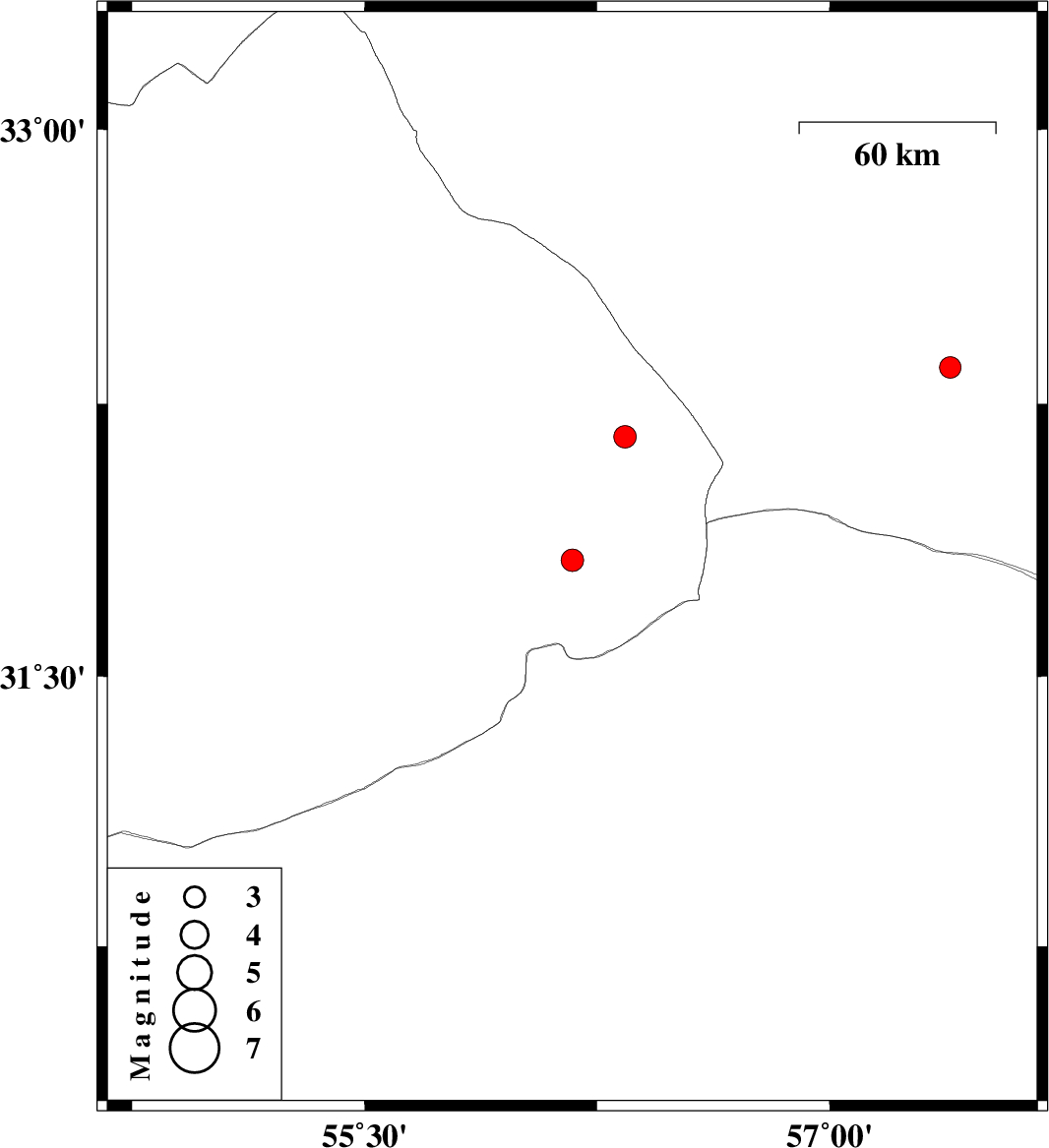 | 2012/12/29 | 14:42:31.5 | 18:12:31.5 | 32.35 | 57.39 | 18 | ML:3.1 | Yazd Province, 133 km North-East of Ravar | ||