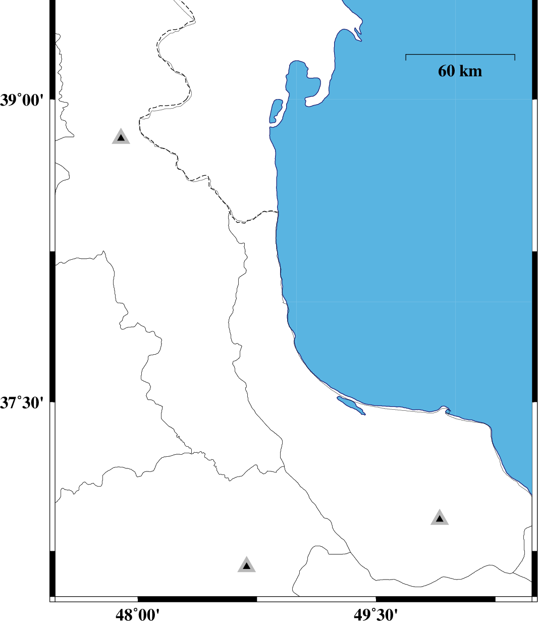 | 2013/01/23 | 20:52:08.8 | 00:22:08.8 | 38.02 | 48.98 | 14 | ML:3 | Caspian Sea, 25 km North of Hashtpar | ||