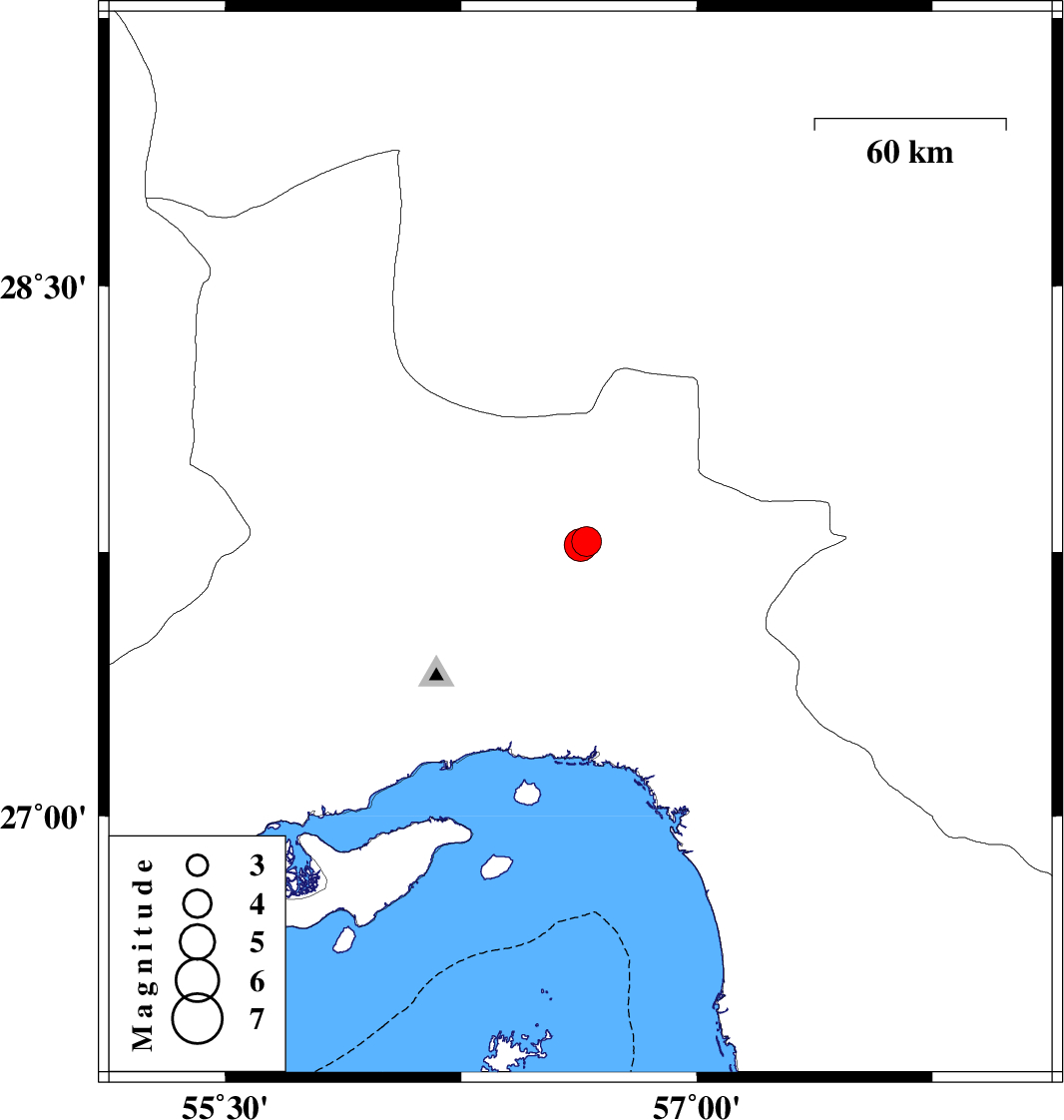 | 2013/01/24 | 04:51:07.2 | 08:21:07.2 | 27.77 | 56.63 | 15 | ML:4.6 | Hormozgan Province, 74 km North-East of Bandar-e abbas |